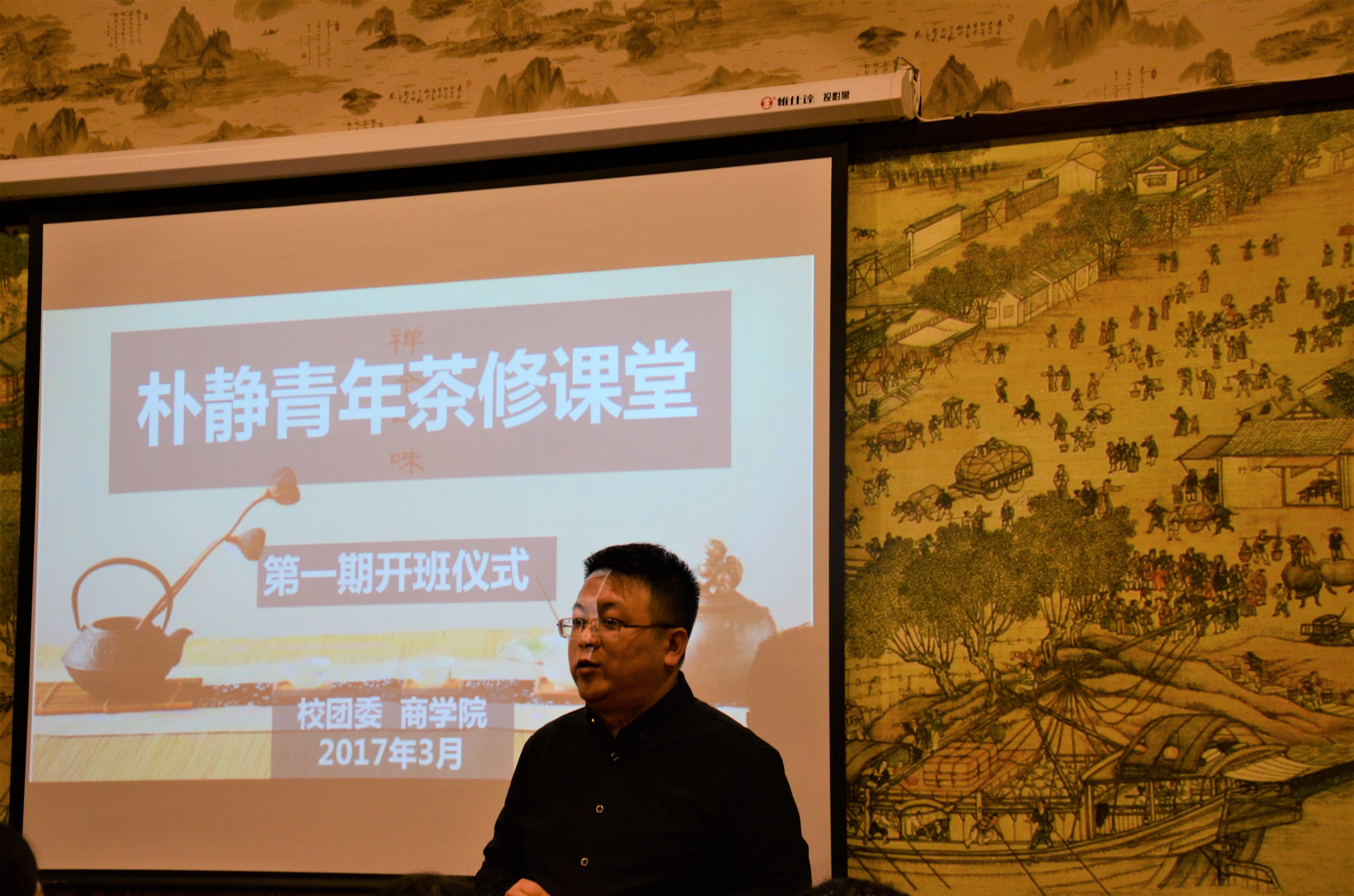 首先,项目发起人王一程老师向学员们介绍了朴静青年茶修课堂。本项目课程以弘杨中国传统茶文化为办学理念,主张“惜茶爱人”,把传统文化和素质教育有机而和谐地结合在一起,通过有形和无形的潜移默化的熏陶,使学员们内外兼修,让茶修,茶会成为一种生活时尚party,以回归简朴的自然状态融入身边的生活中,通过静坐内观,闻香生悦,敬茶爱友,学会珍惜当下,从而觉察内心的宁静规整,和谐圆融。通过系统的课程学习,锻炼学员的组织能力、社交能力和口才,培养学生热爱和传承民族文化的情怀。在茶修课堂,可以吃茶、学茶艺,体验不一样的茶味人生。
