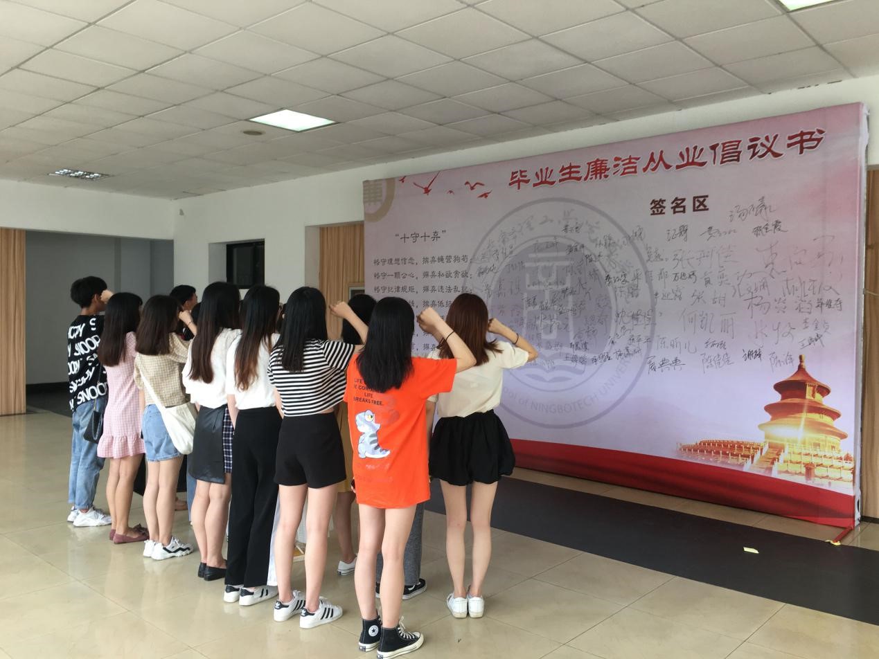 在即将离开学校走上社会大舞台之际,浙大宁波理工学院商学院在商学院一楼大厅进行了2020届毕业生廉洁从业教育。