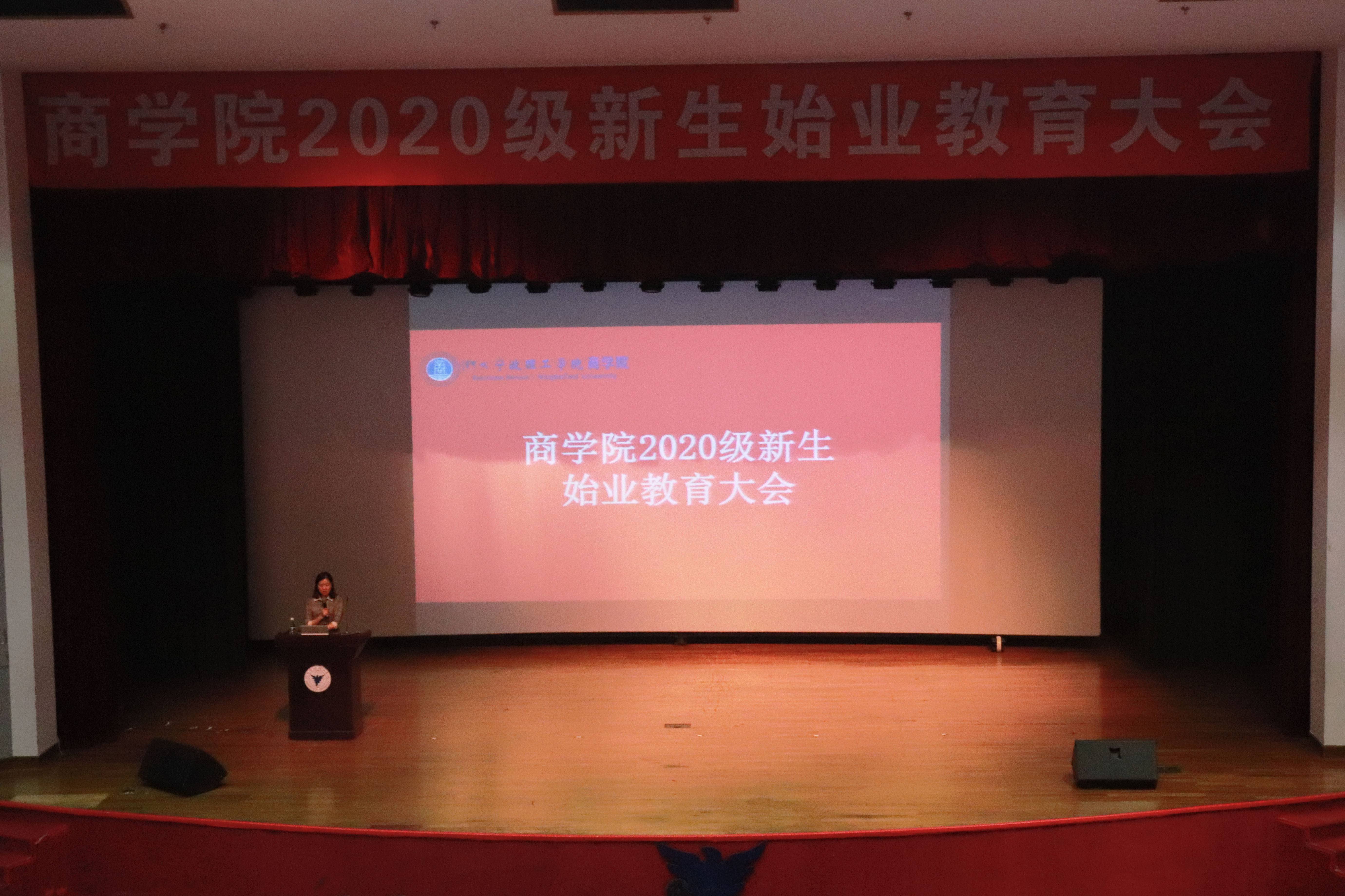 9月29日晚,商学院在可珍讲堂举办2020级新生始业教育大会。学院党委副书记周丽娟,学院国际交流中心老师叶婷婷,学工办辅导员,2020级全体新生参加本次大会。
