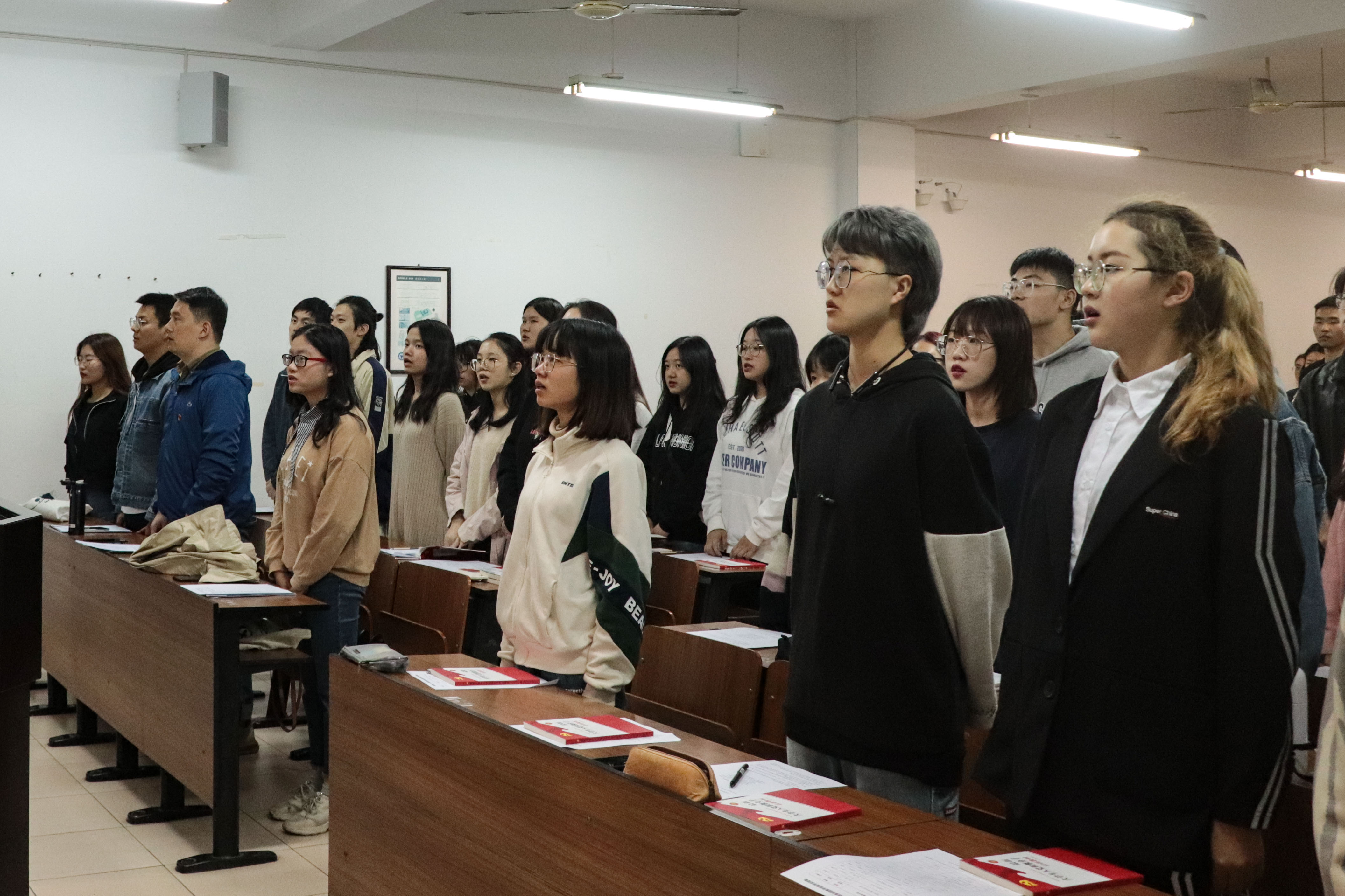 2020年11月3号晚,商学院举行第三十九期入党积极分子培训班开班典礼,学工办马双龙老师、陈鑫老师及第三十九期培训班全体学员参会。