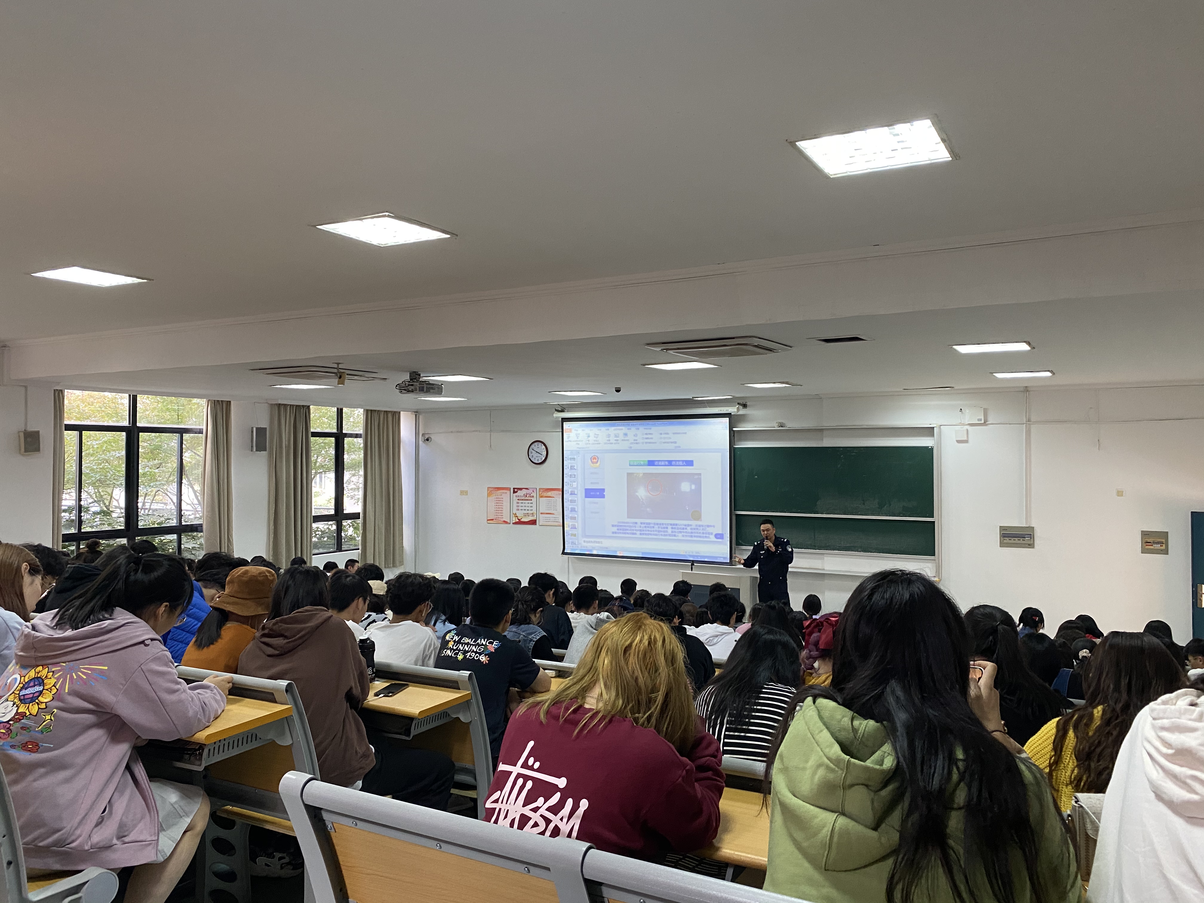 2020年11月6日下午,保卫处、商学院在SC117举办了校园安全月之交通安全、安全防护主题讲座。钟公庙交警中队吴琪警官受邀讲座,商学院2020级200余名新生参会学习。