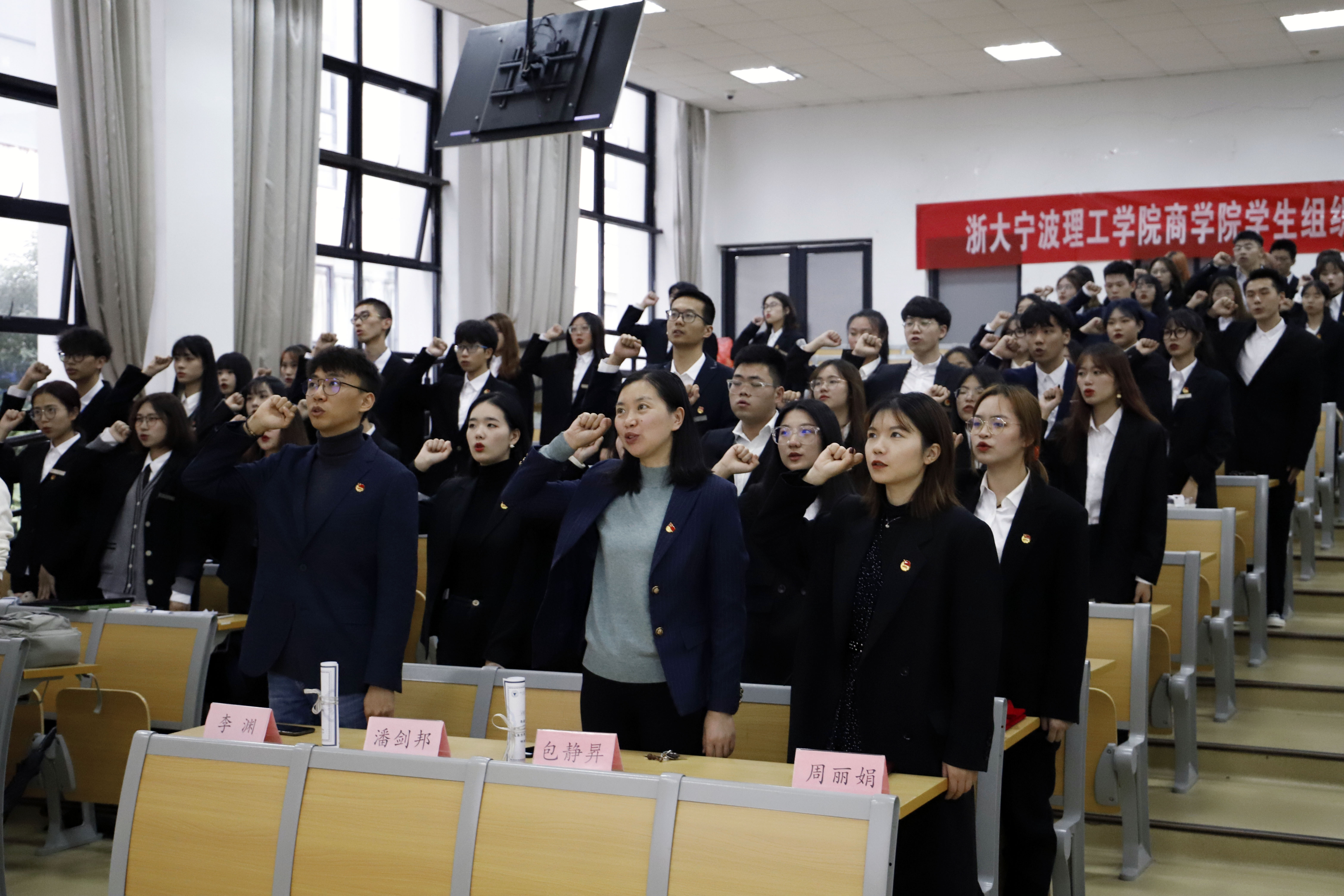 随后,全体团学干部重温入团誓词,并合唱团歌。