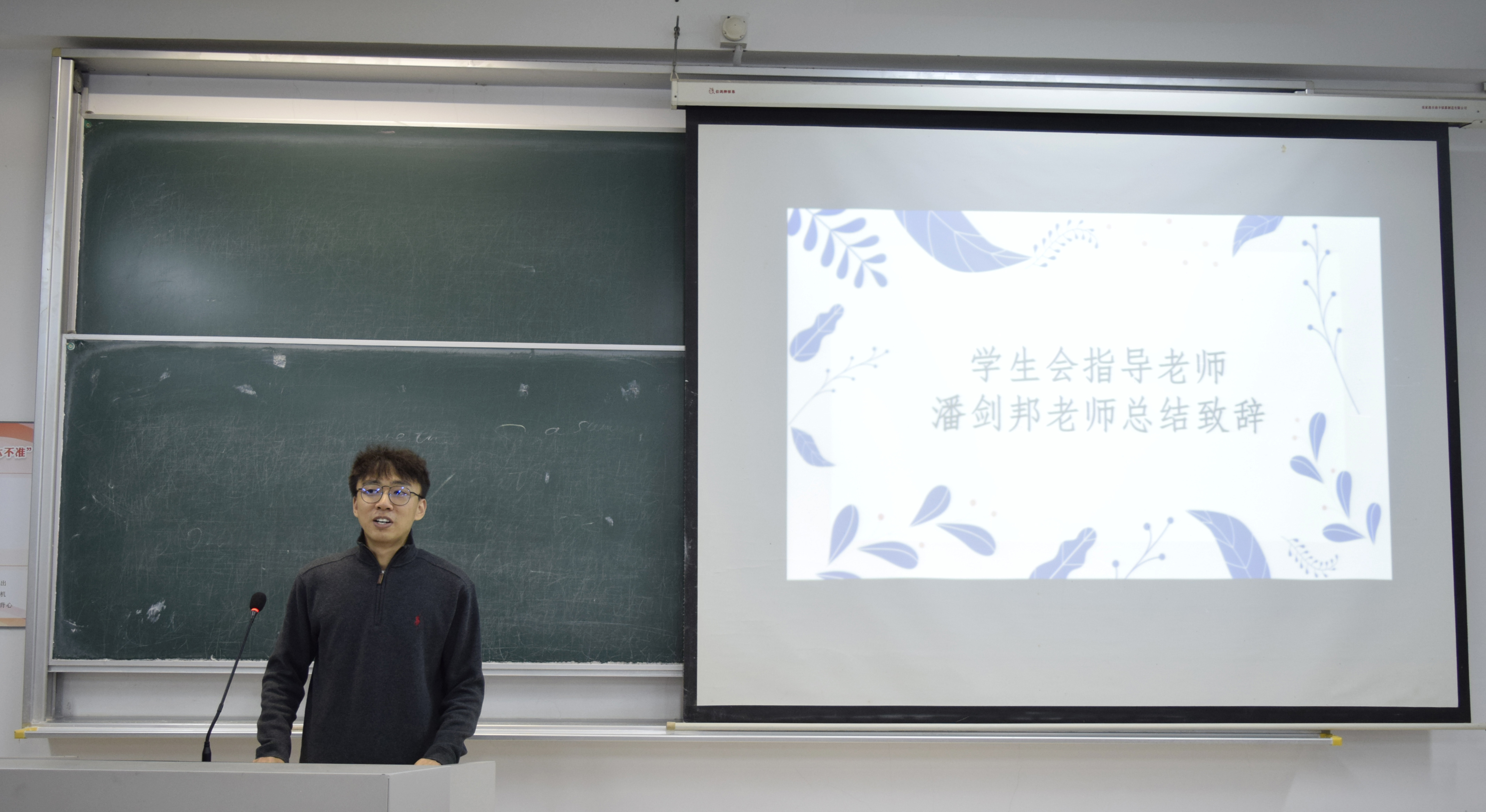 最后,团委副书记潘剑邦老师总结。他强调,社团要聚焦主业,社团成员要充分了解社团主要内容,社团负责人要时刻铭记学生干部的身份,维护社团的形象。希望社团能始终围绕自身特色,保持活力,不断创新,将社团建设得更加美好。
