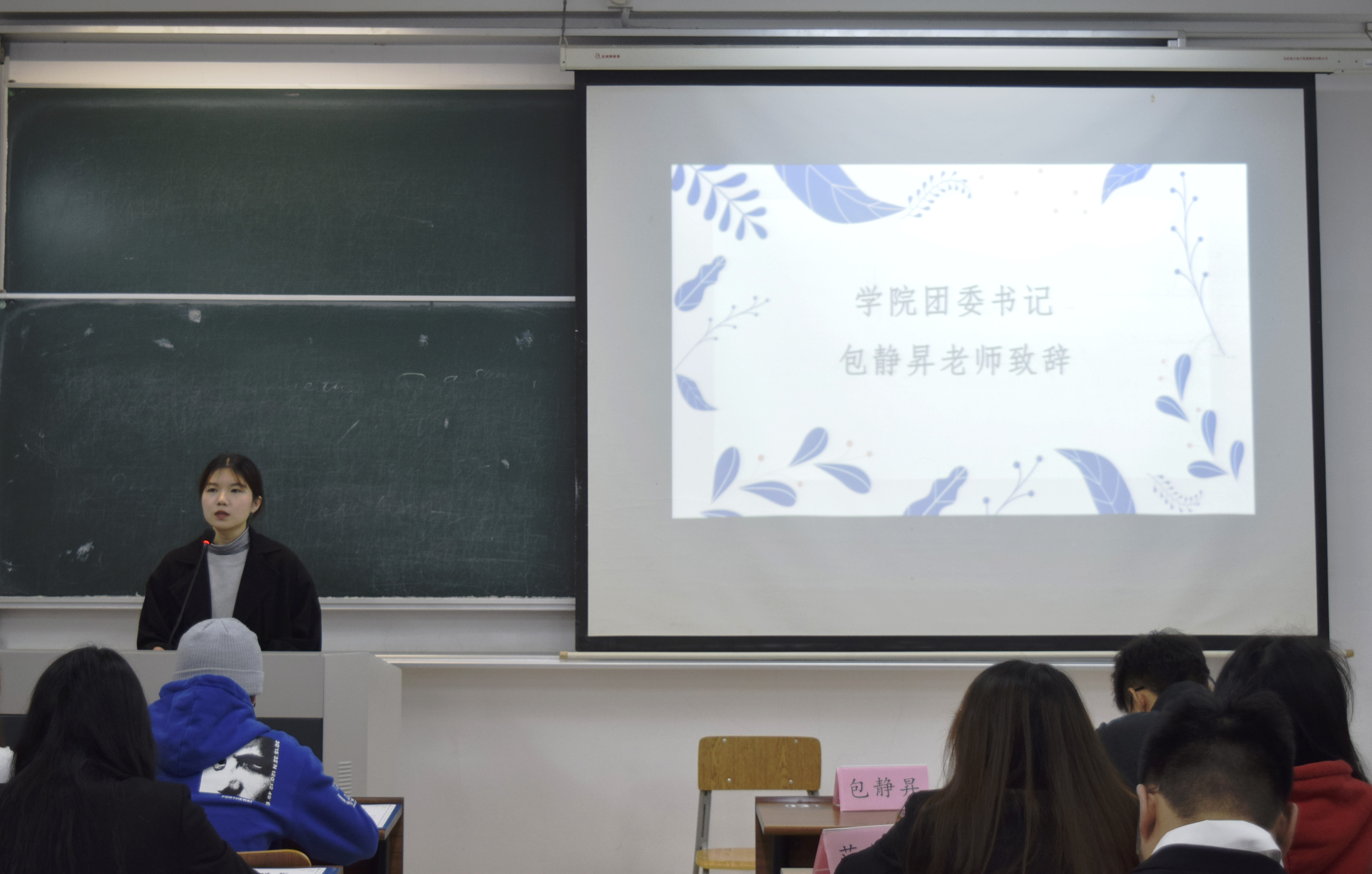 学院团委书记包静昇老师致辞。她表示,一直以来,学院社团围绕专业学习和兴趣培养,开展了很多受学生欢迎的活动,为学院的学生工作注入了很多活力。她希望各社团能始终坚持自身定位,与指导老师多交流,能保持创造力,在新一届社团的发展中能有所收获和成长。