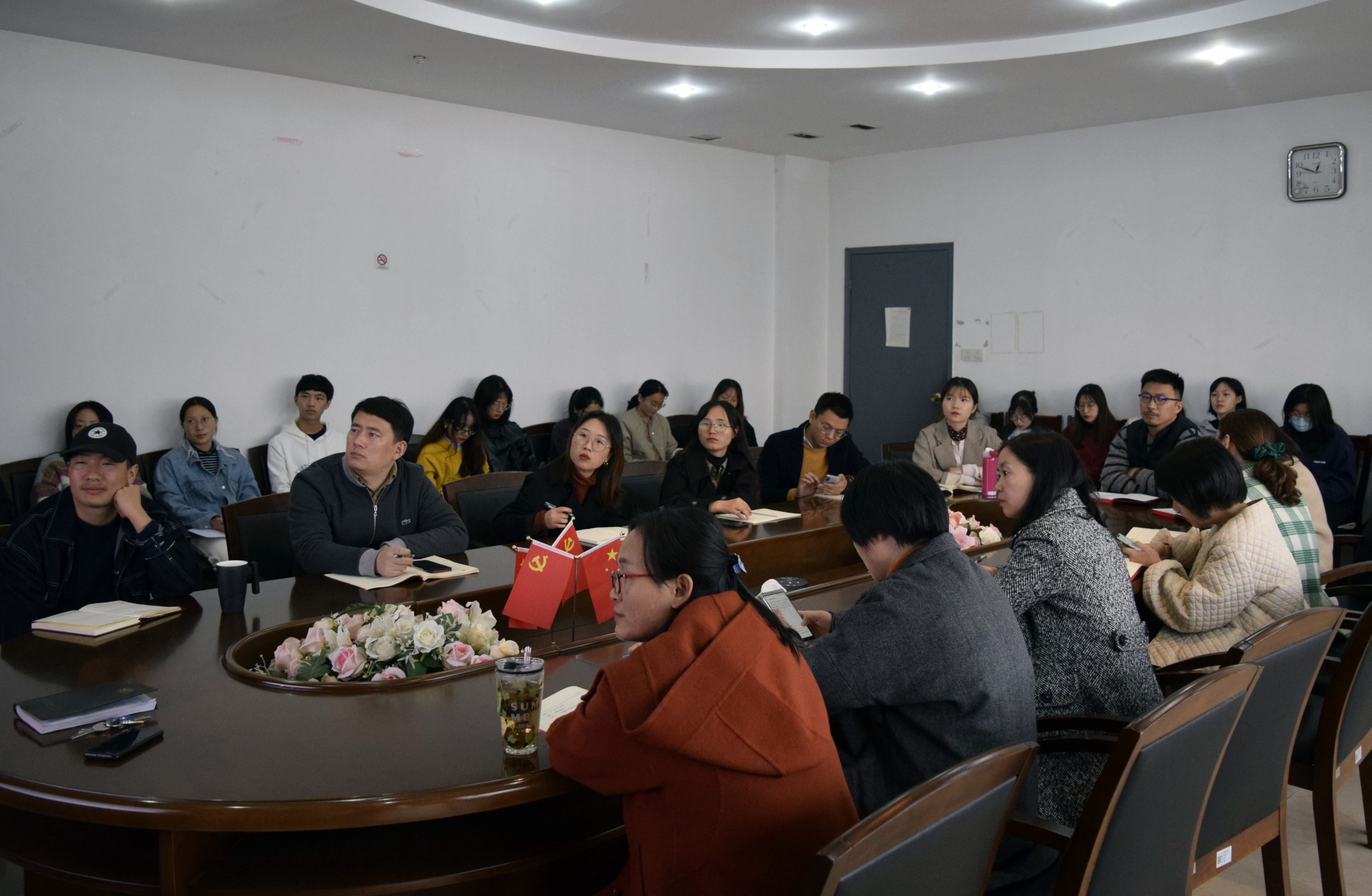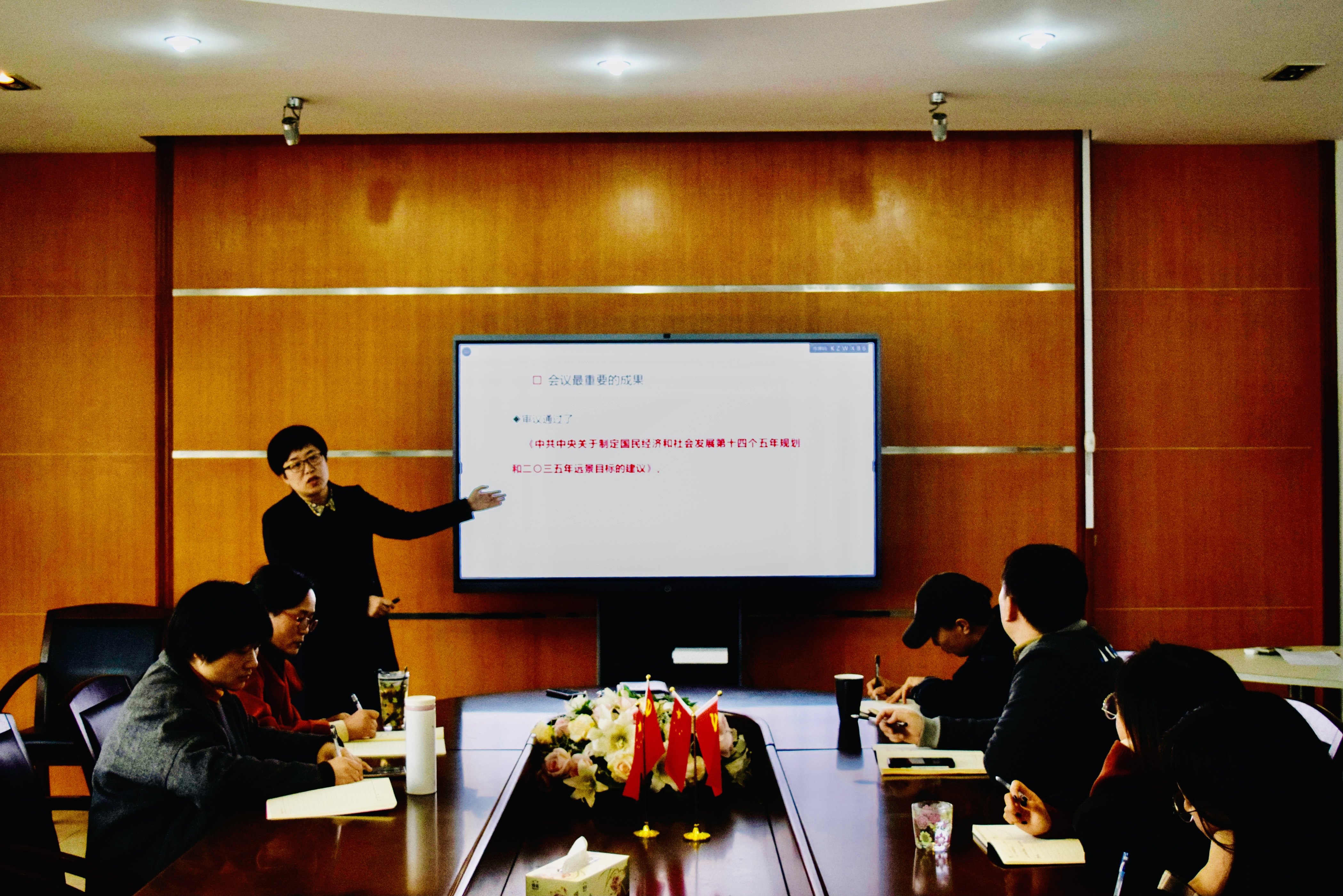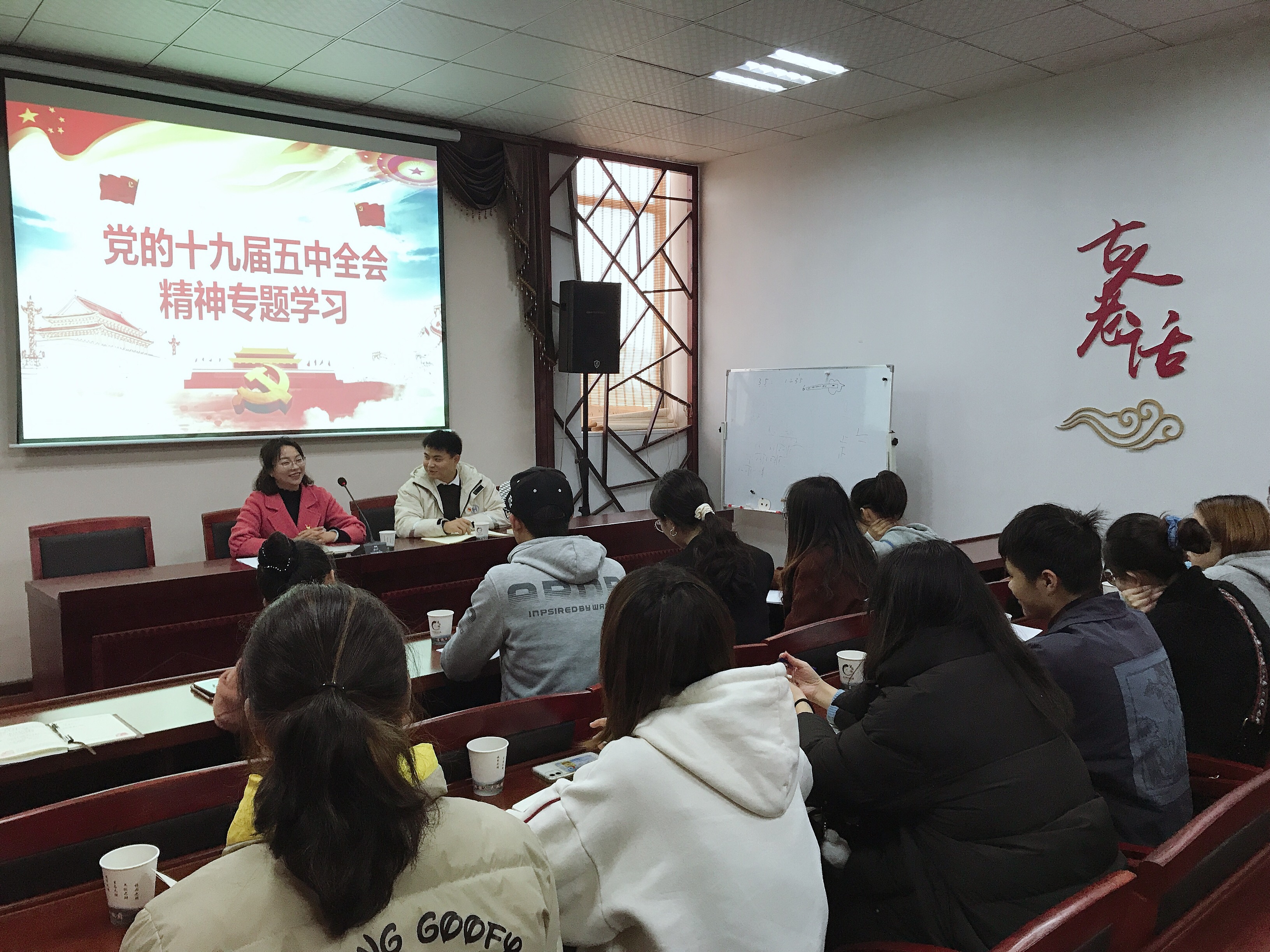 11月26号下午,商学院党委在SC415举办十九届五中全会专题学习会暨支部共建党课培训。教工行政支部,学生支部书记、支委参加学习,商学院党委书记、副院长李萍萍主讲。
