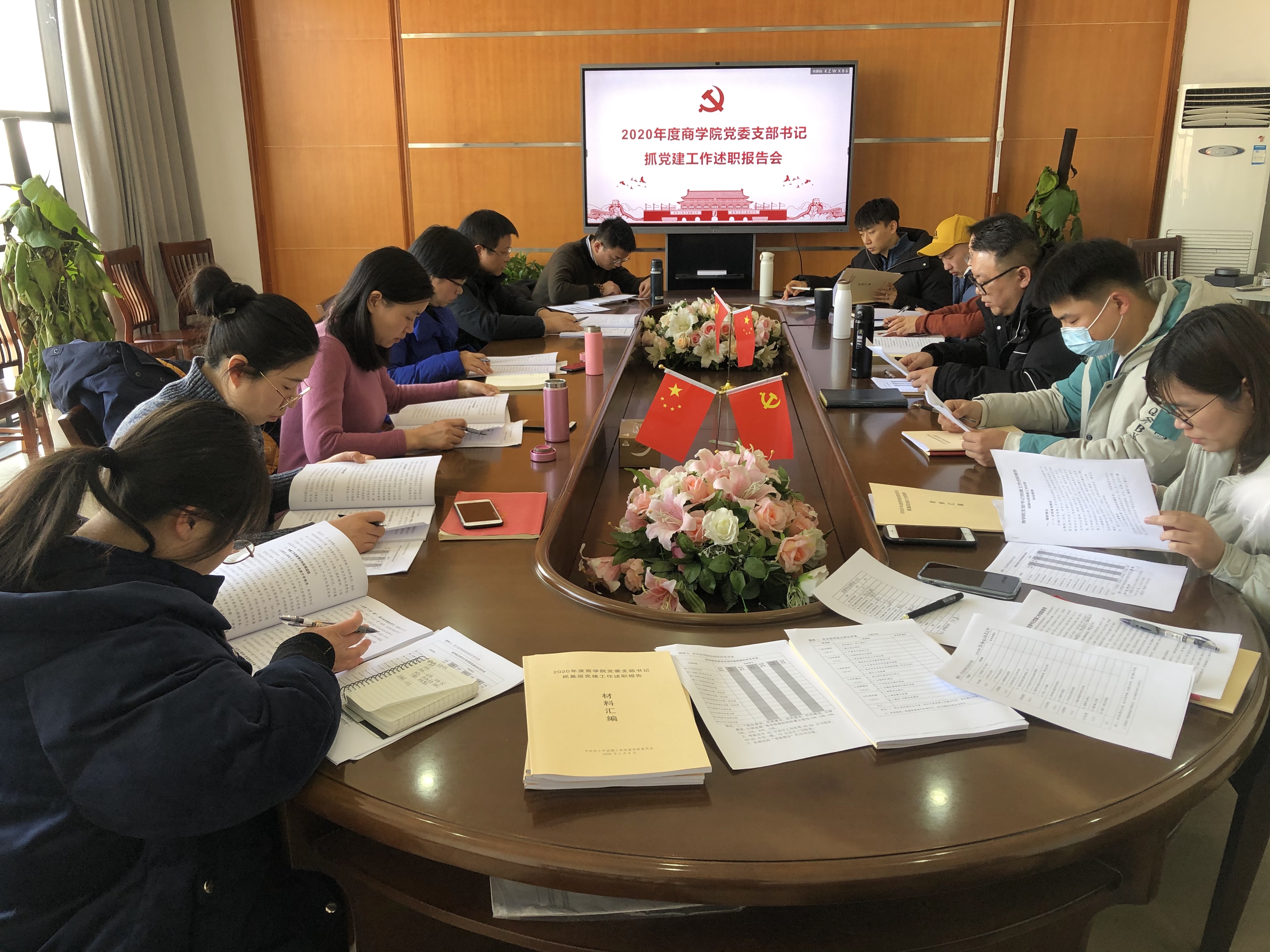 1月12日下午,商学院党委在SC415会议室召开了2020年度支部书述职评议会。学院党委委员、各支部书记参加会议。会议由学院党委书记李萍萍主持。