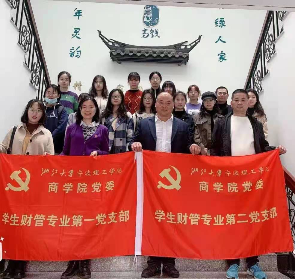 2021年3月27日上午,商学院学生财管专业第一党支部与第二党支部13名学生党员,在学院党委副书记周丽娟老师、辅导员胡亚老师的带领下,前往东钱湖高前生态村进行交流和调研活动。