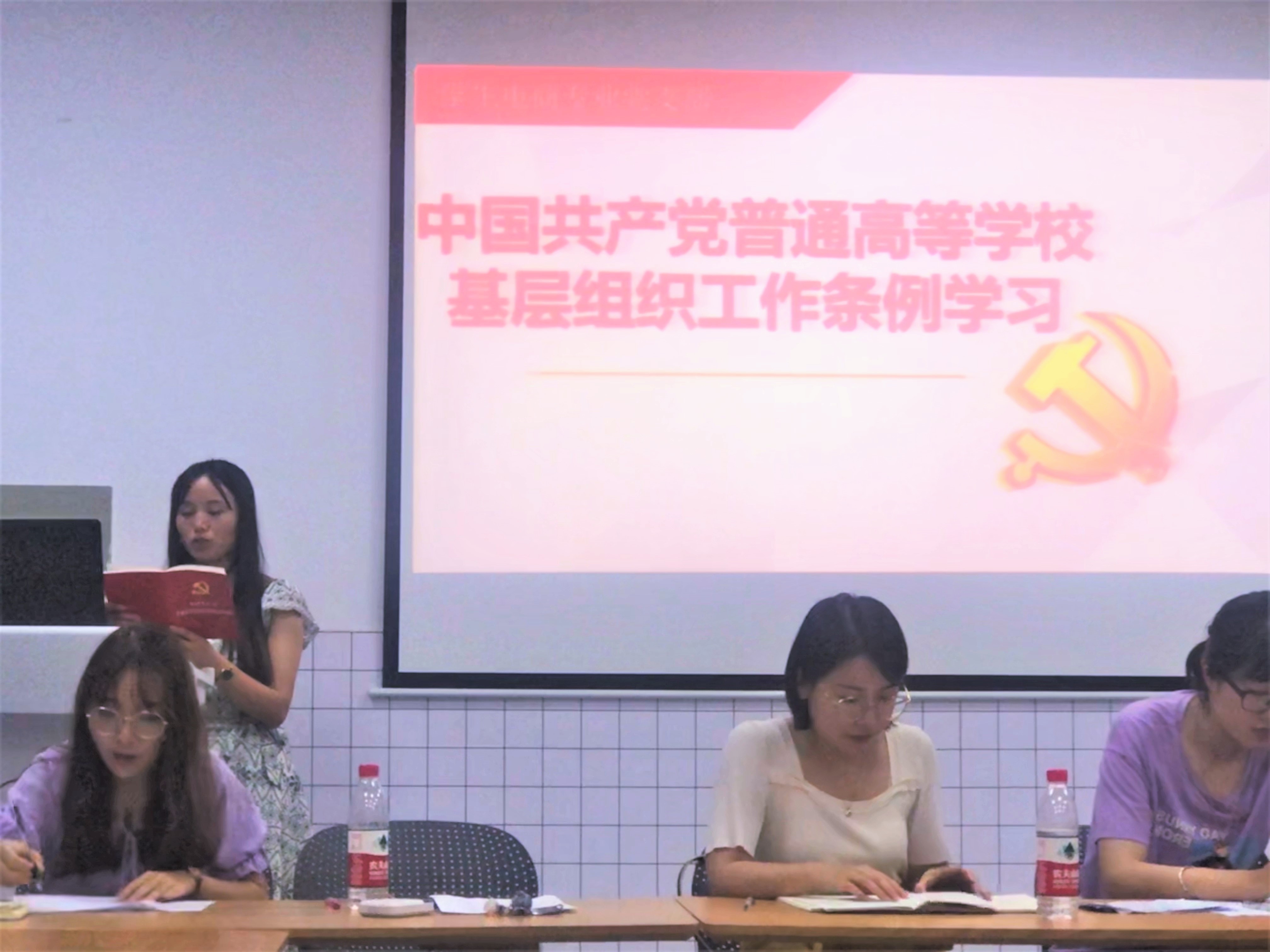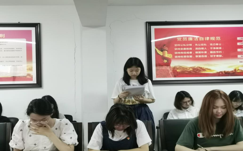 (十)6月14日晚,在sa206召开学生电商专业党支部大会,电商专业辅导员王丽丽同志带领与会人员学习《中国共产党普通高等学校基层组织工作条例》。通过对《条例》的学习,与会支部党员学习到高校党组织工作应遵循的原则、组织设置、主要职责和党员队伍建设以及思想政治工作的重要性和指导思想等内容。本次学习对于提升学生党员的党性修养和对党组织的认识有系统性的价值,对于学生党支部的建设更具重要作用。