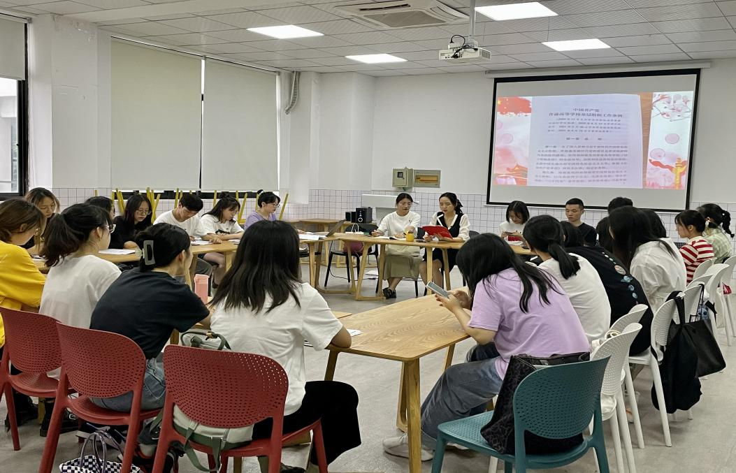 (五)5月27日晚,学生金融专业第二党支部在SA206举行学习《普通高等学校基层组织工作条例》专题会议。支部书记章浩燕表示,《条例》的实施对于全面贯彻党的教育方针,立德树人根本任务,建设高质量教育体系、建设教育强国,具有重要意义,全体党支部成员都应认真学习、遵照执行。