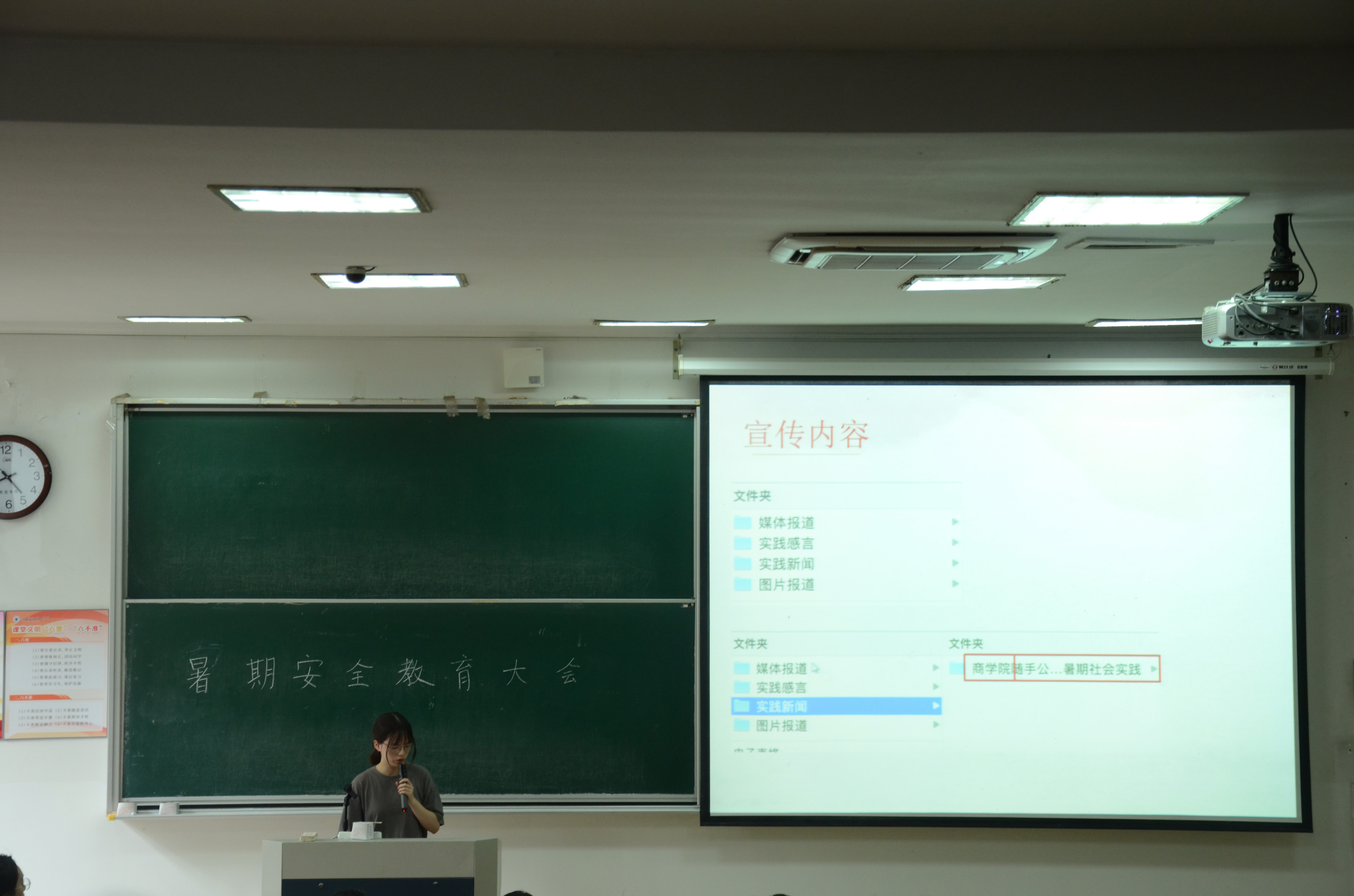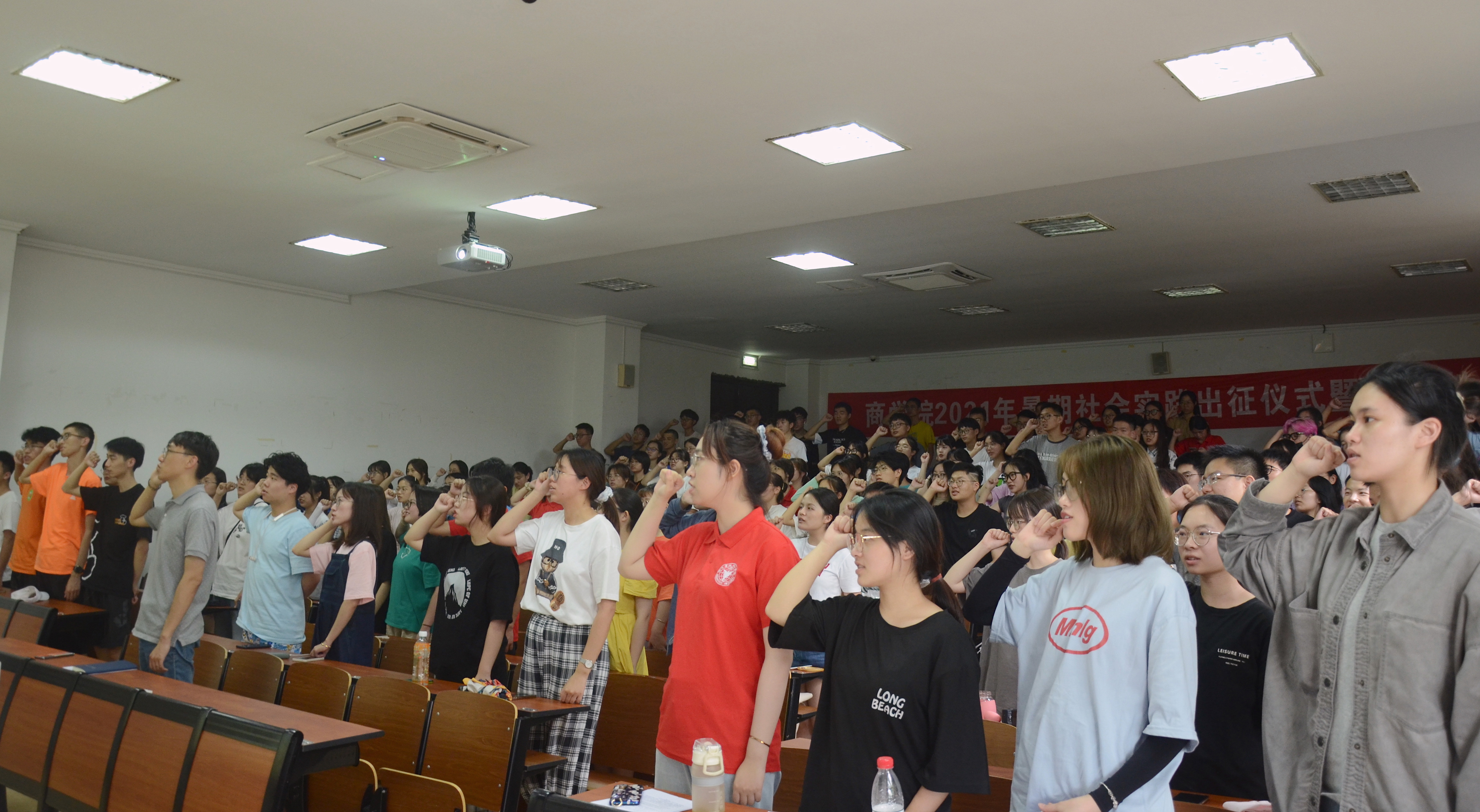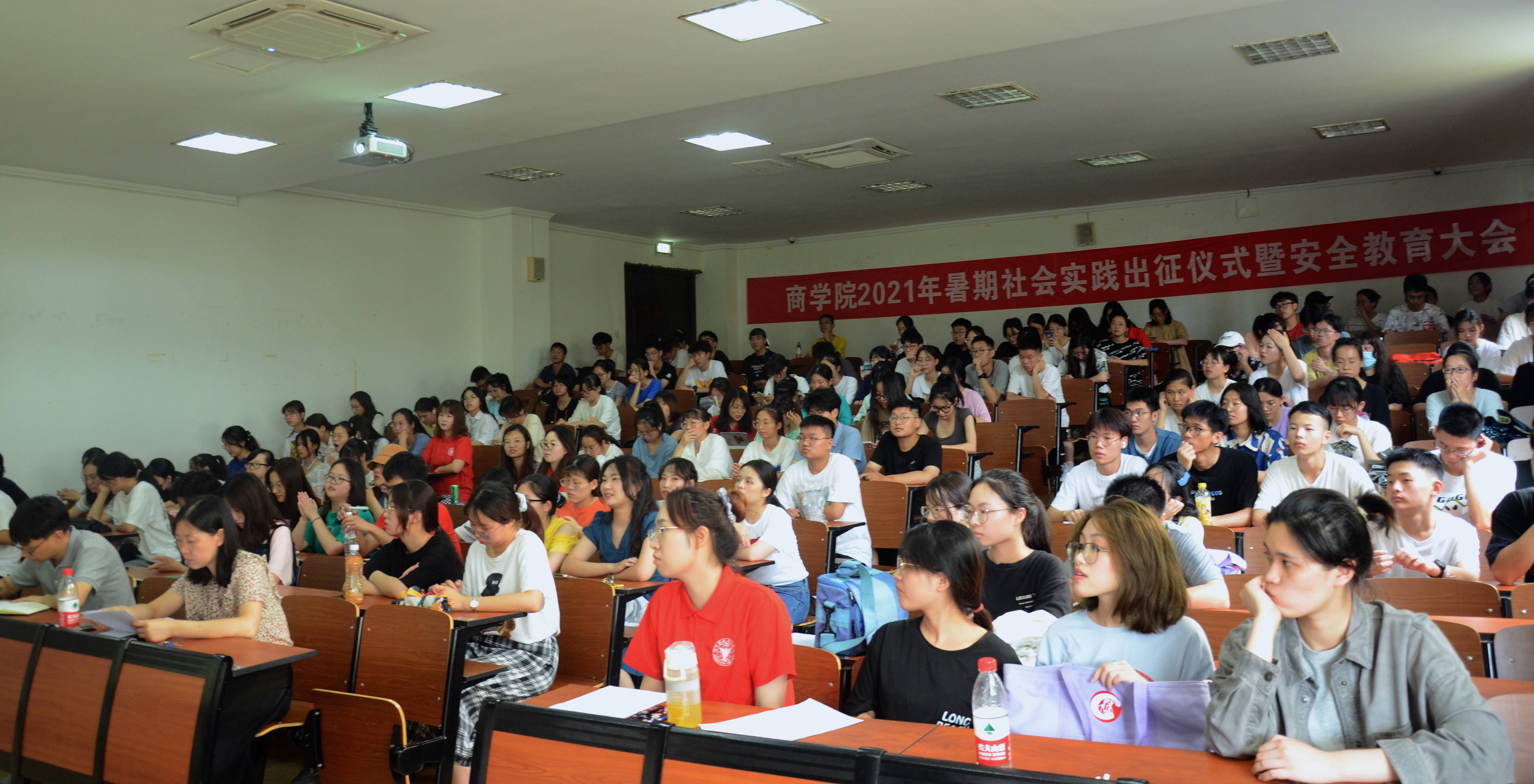 7月7日下午,商学院团委在sc103举办了暑期社会实践出征仪式暨安全教育大会。商学院党委副书记、纪委书记周丽娟,学院团委书记潘剑邦出席,大一至大三年级班长及各实践团队负责人及成员参加本次大会。