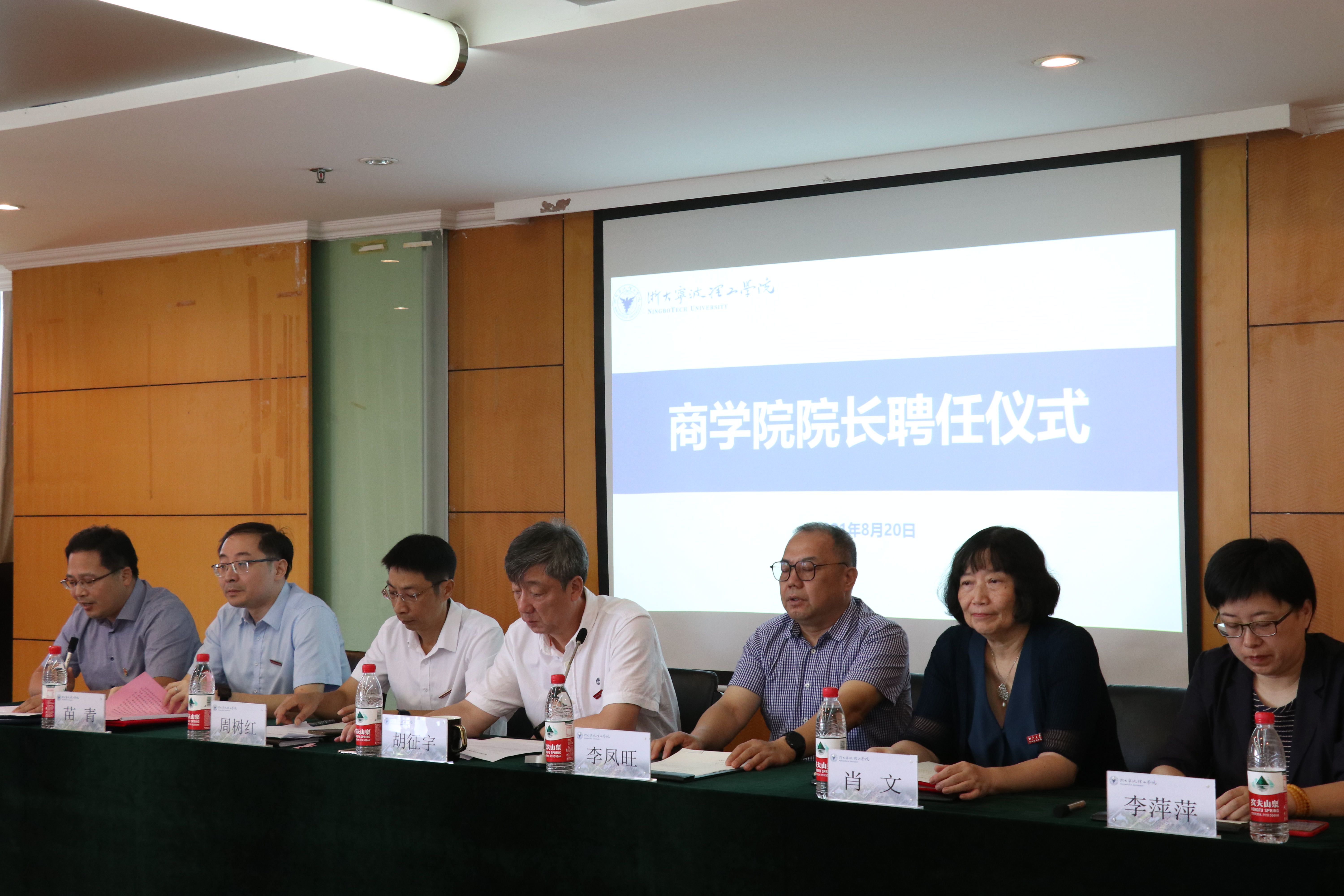 聘任仪式上,胡征宇书记为教育部青年长江学者、浙江大学公共管理学院博导苗青教授颁发了院长聘书并佩戴校徽;为肖文教授颁发了“启新特聘教授”聘书。肖文、李萍萍、苗青、林承亮会上作了发言。