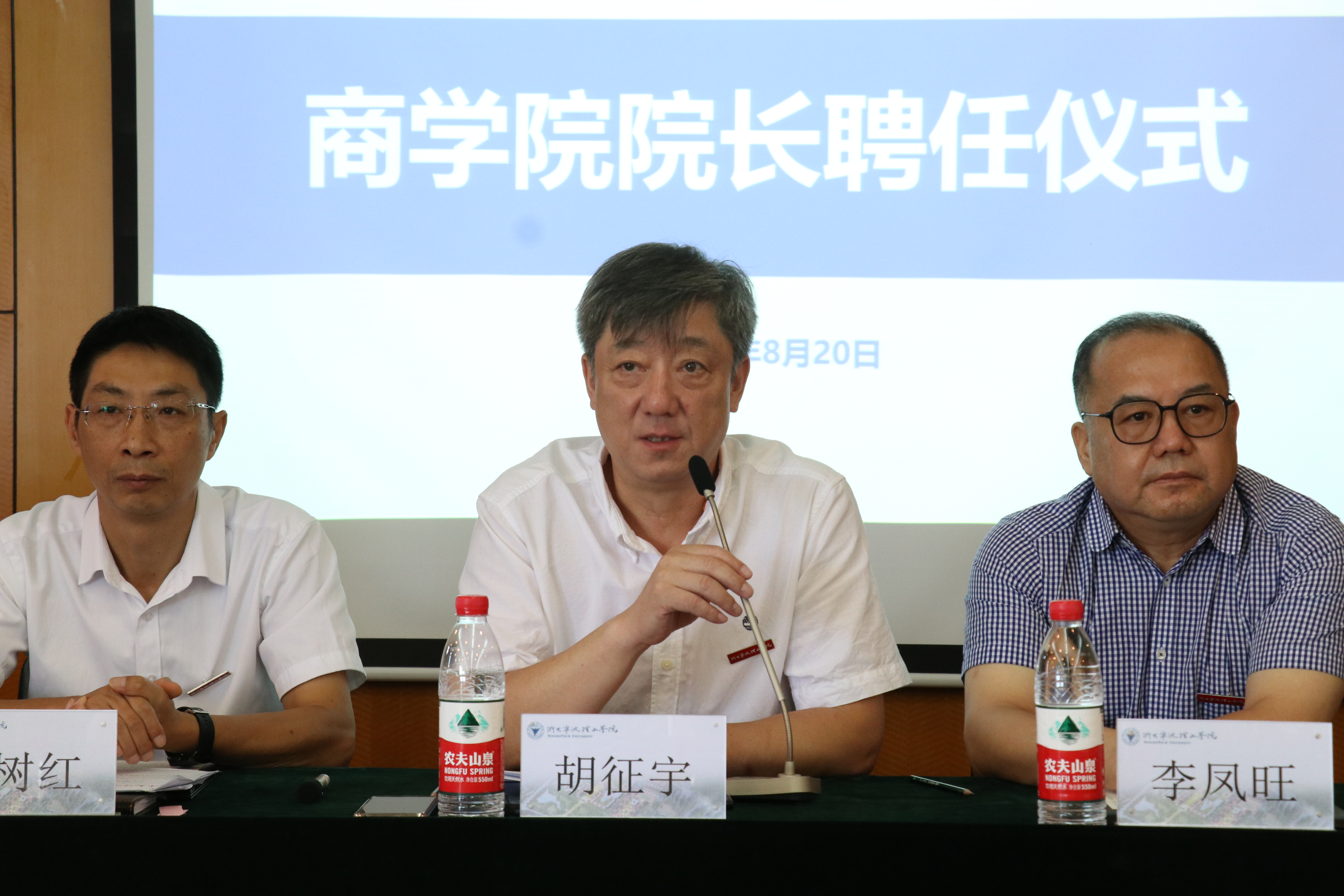 胡征宇代表学校对肖文在学校工作期间的努力取得的成绩和贡献表示感谢,对苗青担任院长表示祝贺,并提出四点要求,一是要加强班子建设和团结,做好新一轮发展;二是要在“十四五”规划基础上,进一步明确发展目标,凝聚更多发展智慧;三是要学会“弹钢琴”,进一步做好重点特色学科发展;四是要做好教师队伍建设,加强对内培育、对外引才工作的思考,争取各项事业取得更大发展。