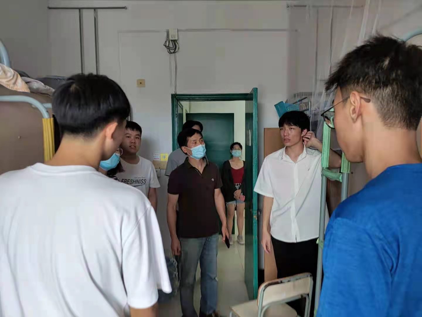 来到学院26幢男生宿舍和12幢女生宿舍,李凤旺副书记询问新生的安顿情况,并耐心解答学生的生活、学习以及未来发展等方面的问题。学院老师们提醒新生们要遵守宿舍管理要求,保证宿舍安全,在疫情防控期间注意保持宿舍卫生,做好个人防护。同时,学院教师希望同学们能尽快适应大学生活,为接下去的军训做好准备。