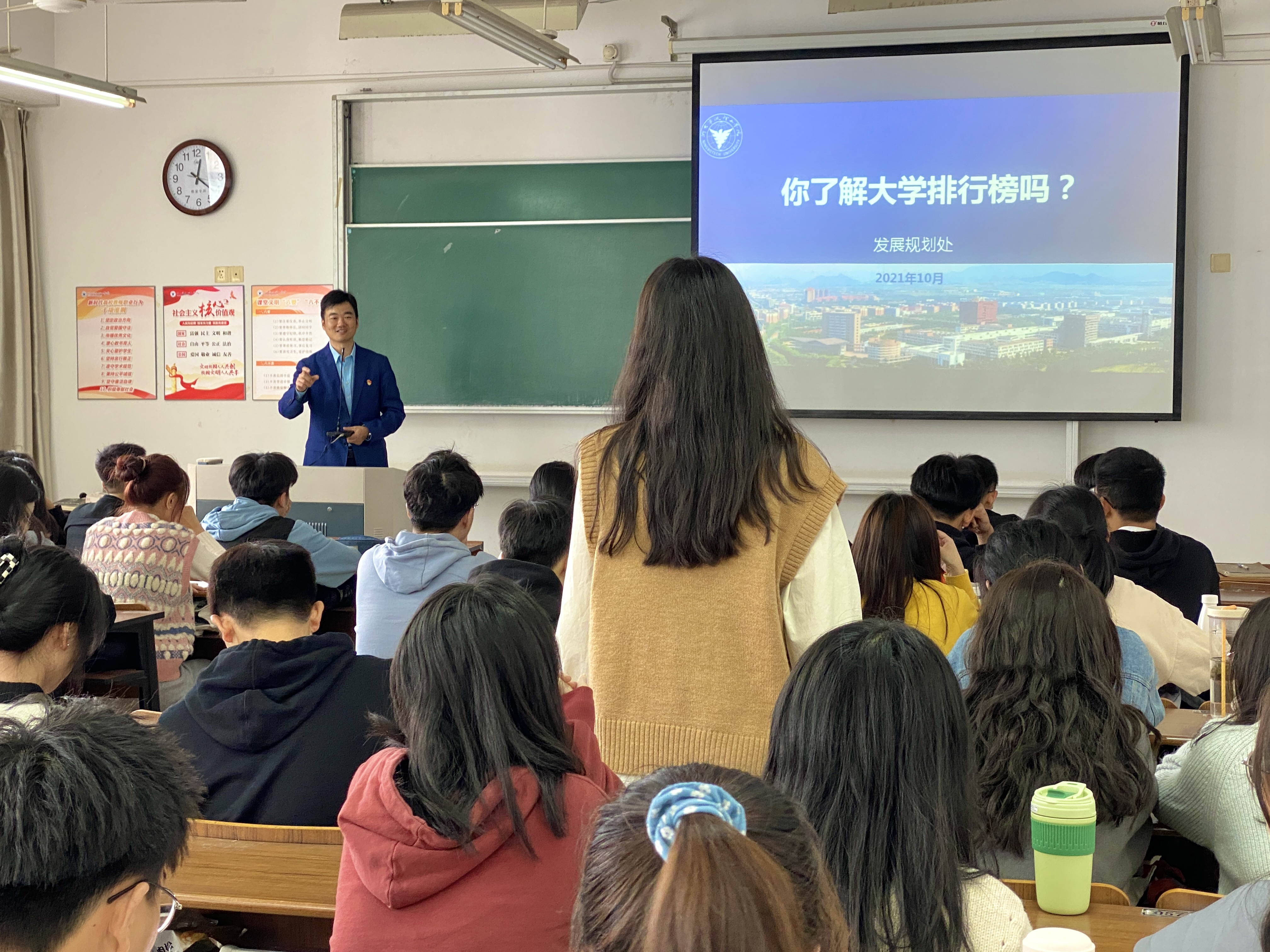 10月19日中午,两堂由商学院自选、机关党委老师主讲的微课在SB301教室开展,来自教科战略研究院的张国昌老师的《你了解大学排行榜吗》和党委办公室(校长办公室)主任陈斌老师的《学校文化符号解码》,得到了学院2021级60位班长、团支书、宣传委员的好评,微课由商学院党委副书记、纪委书记吴琼主持。