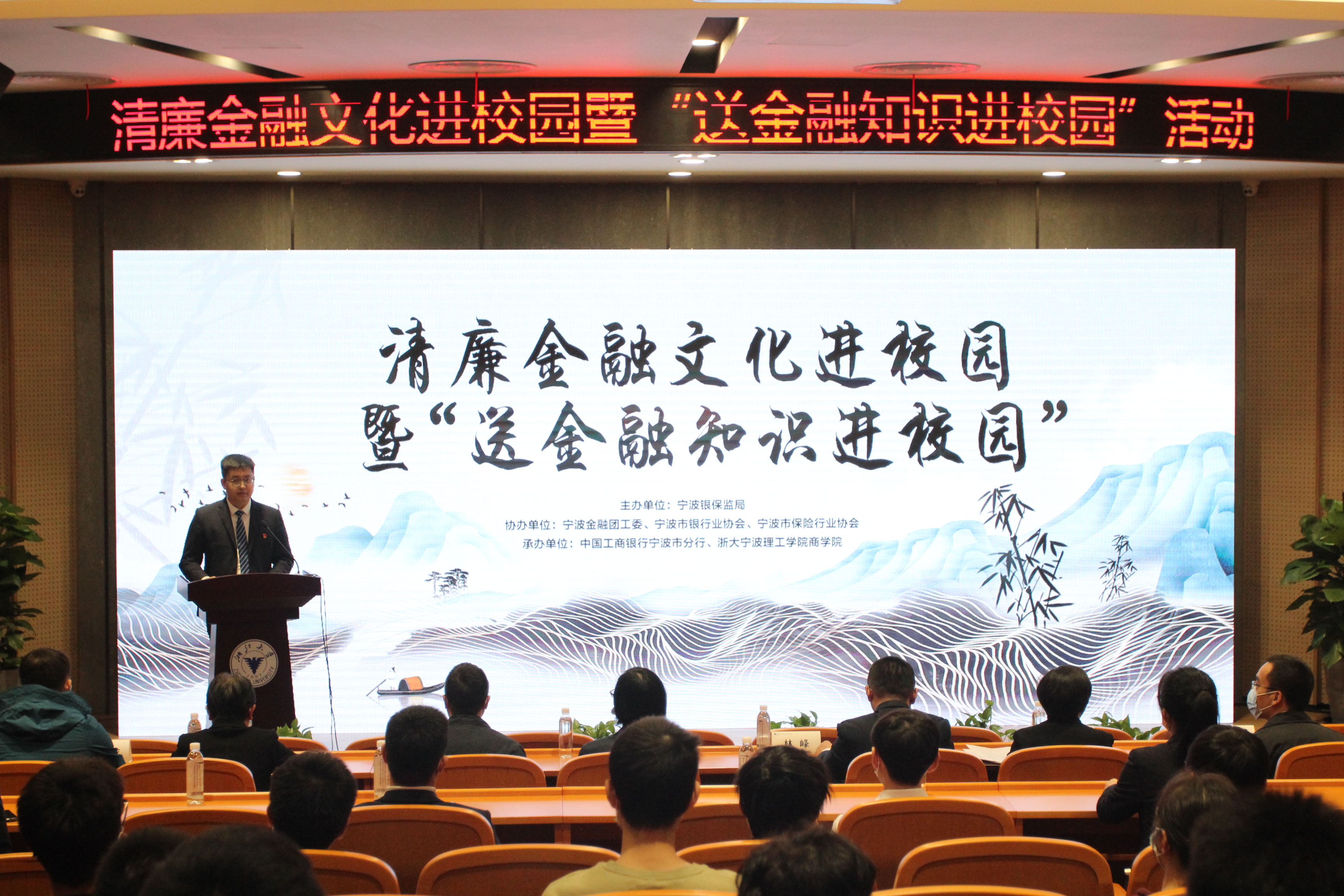 为赓续百年廉政文化精神,纵深推进清廉理工建设,宣传清廉金融文化,商学院邀请了宁波银保监局等单位,于11月5日下午在启新大讲堂举办清廉金融文化进校园暨“送金融知识进校园”活动。