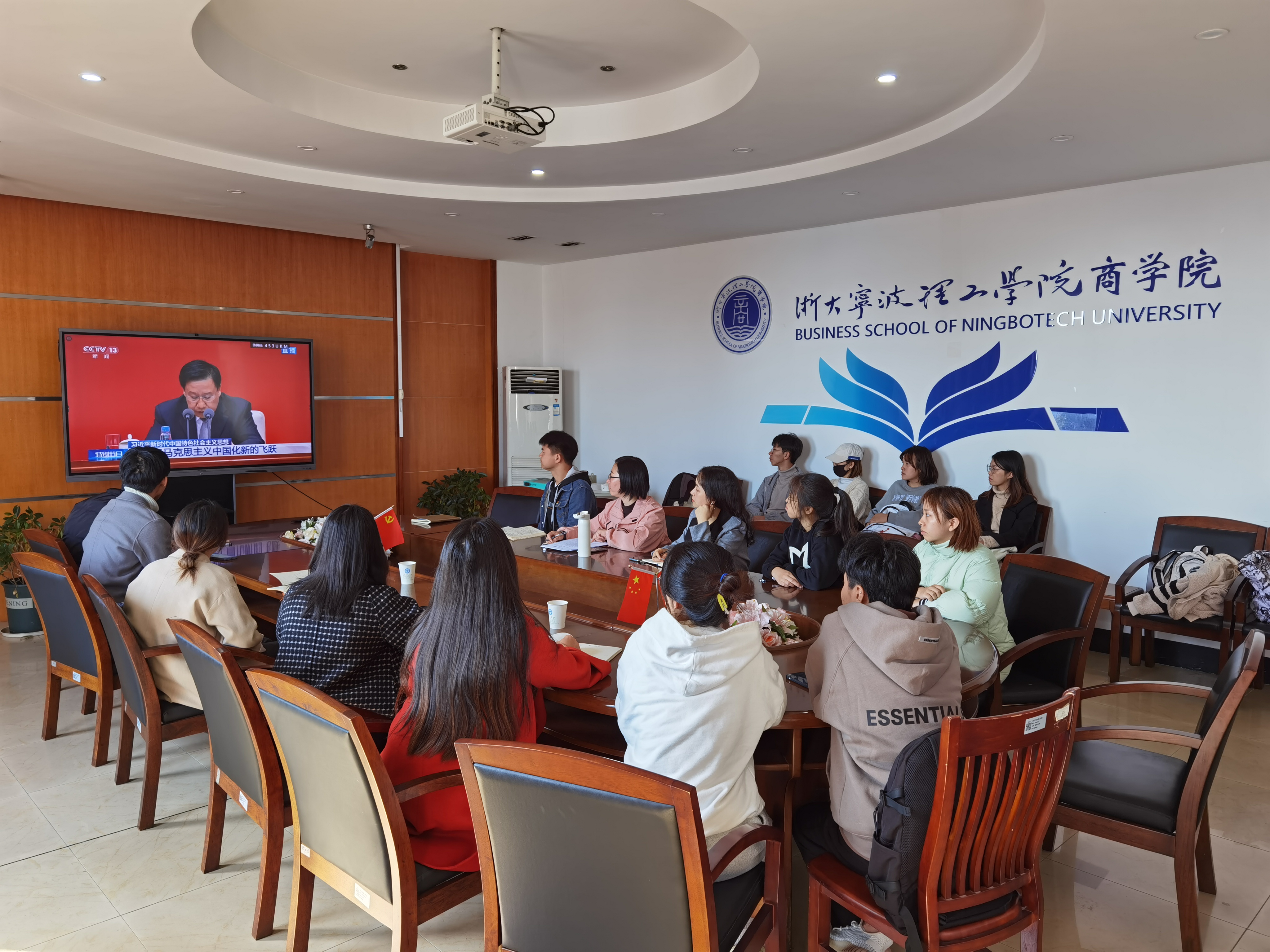 11月12日上午10时,党的十九届六中全会新闻发布会召开,商学院组织师生在SC415共同观看直播,学院党委副书记、纪委书记吴琼,学生党支部书记、学生党员、团学骨干共同学习。
