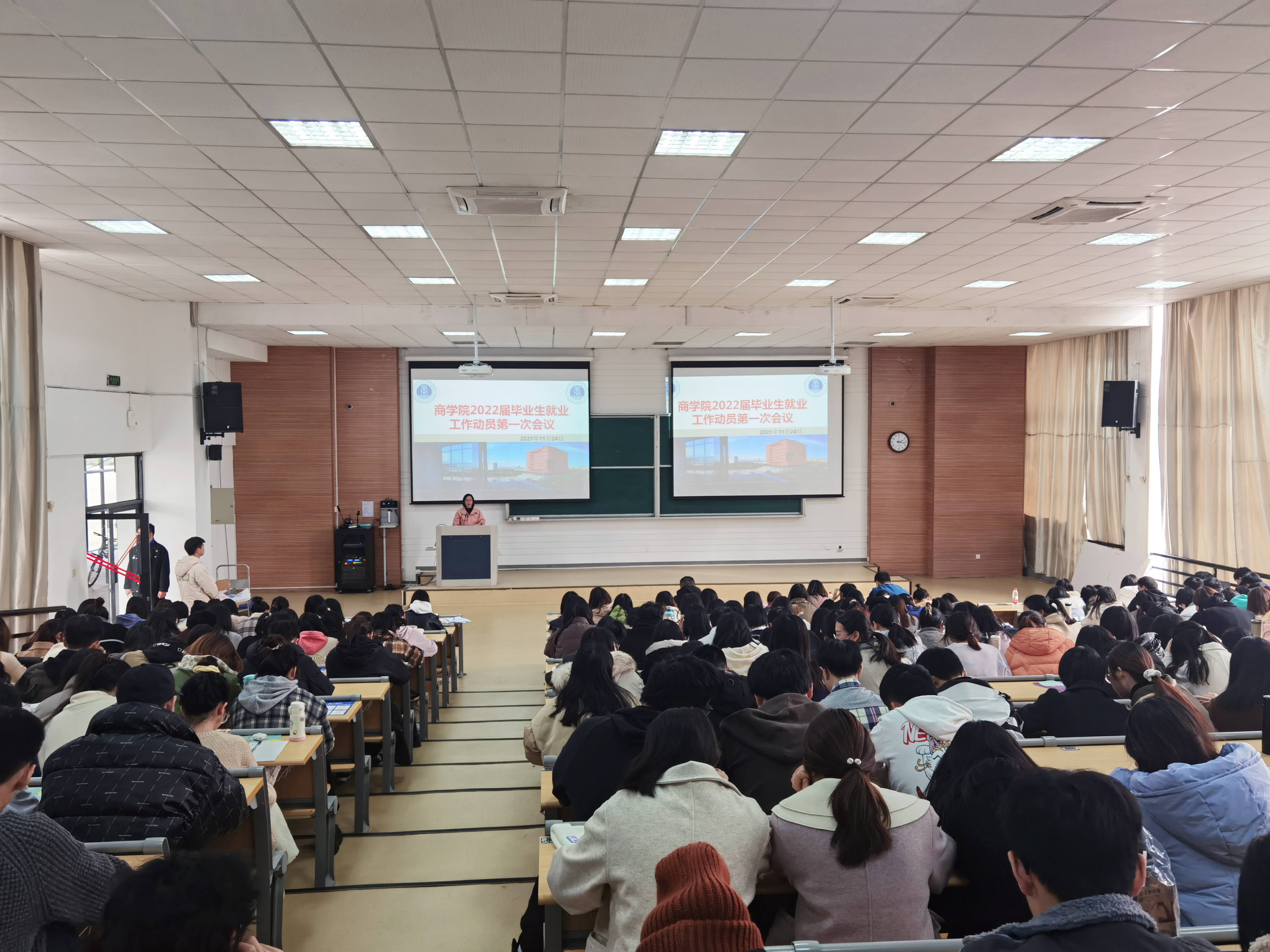为切实做好学院2022届毕业生就业工作,做到就业工作提早动员,就业意识预先培养,就业政策预先知悉,就业流程提早掌握,学院于11月24日、25日分专业组织召开2022届毕业生就业动员暨政策解读大会。学院党委副书记、纪委书记吴琼老师、学院教务办主管王一程老师、学工办主管马双龙老师、保卫处蔡浩婕老师、2022届毕业班班导师、学工办辅导员及全体2022届毕业生参加本次大会,大会由赵昌志老师主持。