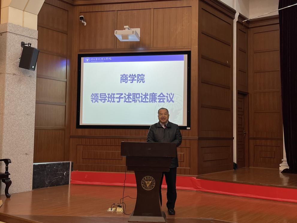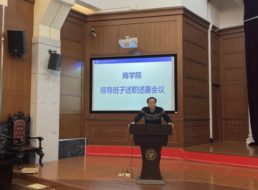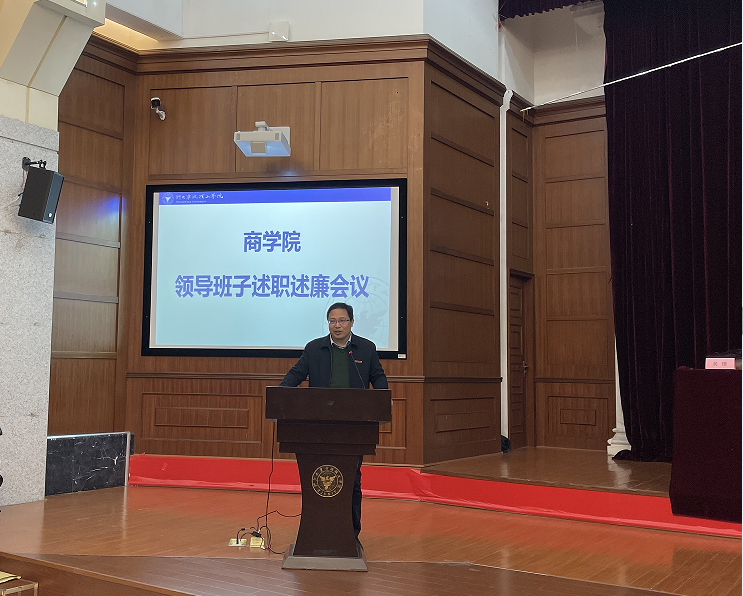 1月5日下午,商学院在金宗城法学教学中心召开2021年度领导班子述责述廉会议。学校党委副书记李凤旺应邀出席并讲话,学院领导班子成员及全体教职工参加。会议由学院党委副书记、纪委书记吴琼主持。