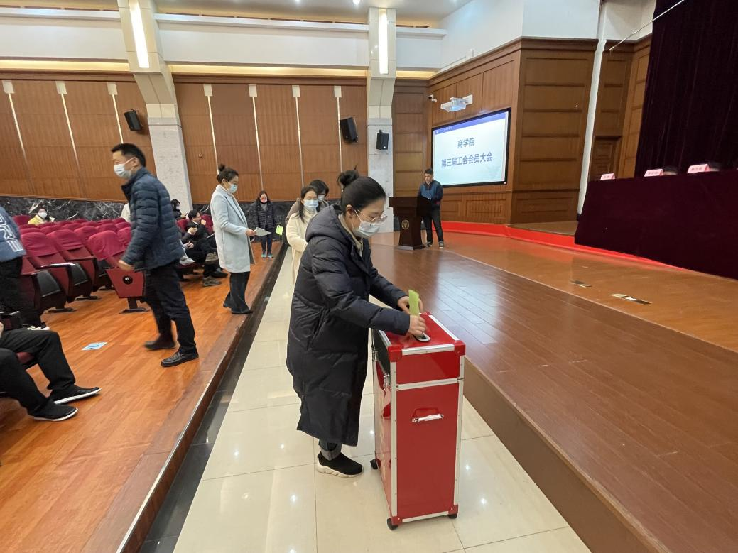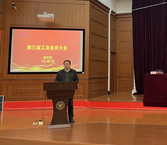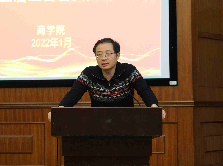 1月5日下午,商学院在金宗成法学教学中心召开第一届教职工大会和第三届工会会员大会,疫情原因,两个大会均采取线上线下同步进行。学院党委副书记、纪委书记吴琼主持两个大会。