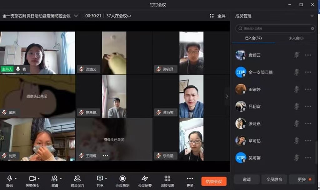 为了统一思想和行动,抓细抓实各项防疫工作,引导党员学生在疫情防控中发挥示范引领作用。4月18日中午12点30分,商学院学生金融专业第一党支部在线上召开4月支部主题党日活动暨疫情防控工作会议,支部党员、重点发展对象参加此次会议,会议由支部书记苏衍宝主持。