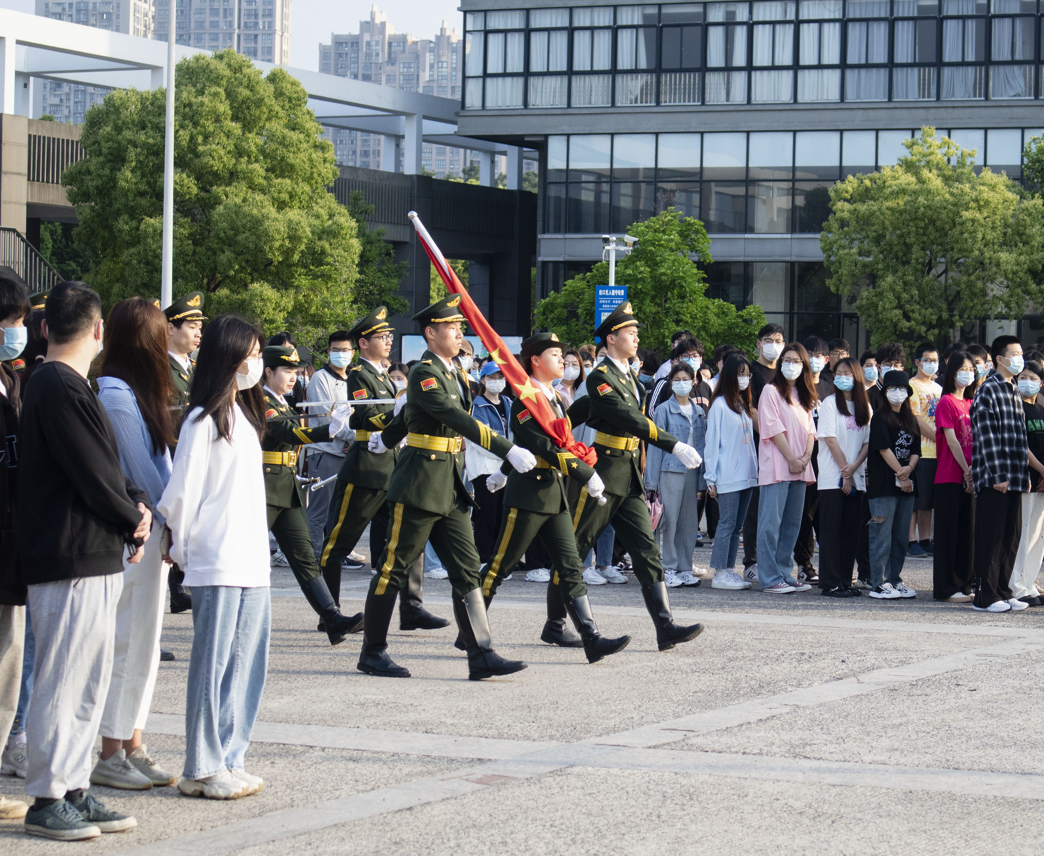 为进一步激励和引导广大师生学习弘扬伟大抗疫精神,凝聚正能量,共同打赢校园疫情防控阻击战,2022年4月25日清晨,商学院于西门举行“凝聚正能量,同心抗疫情”主题升旗仪式。学院团委书记潘剑邦老师,2021级全体学生参加,学院团委学生副书记柯籽彤主持本次活动。