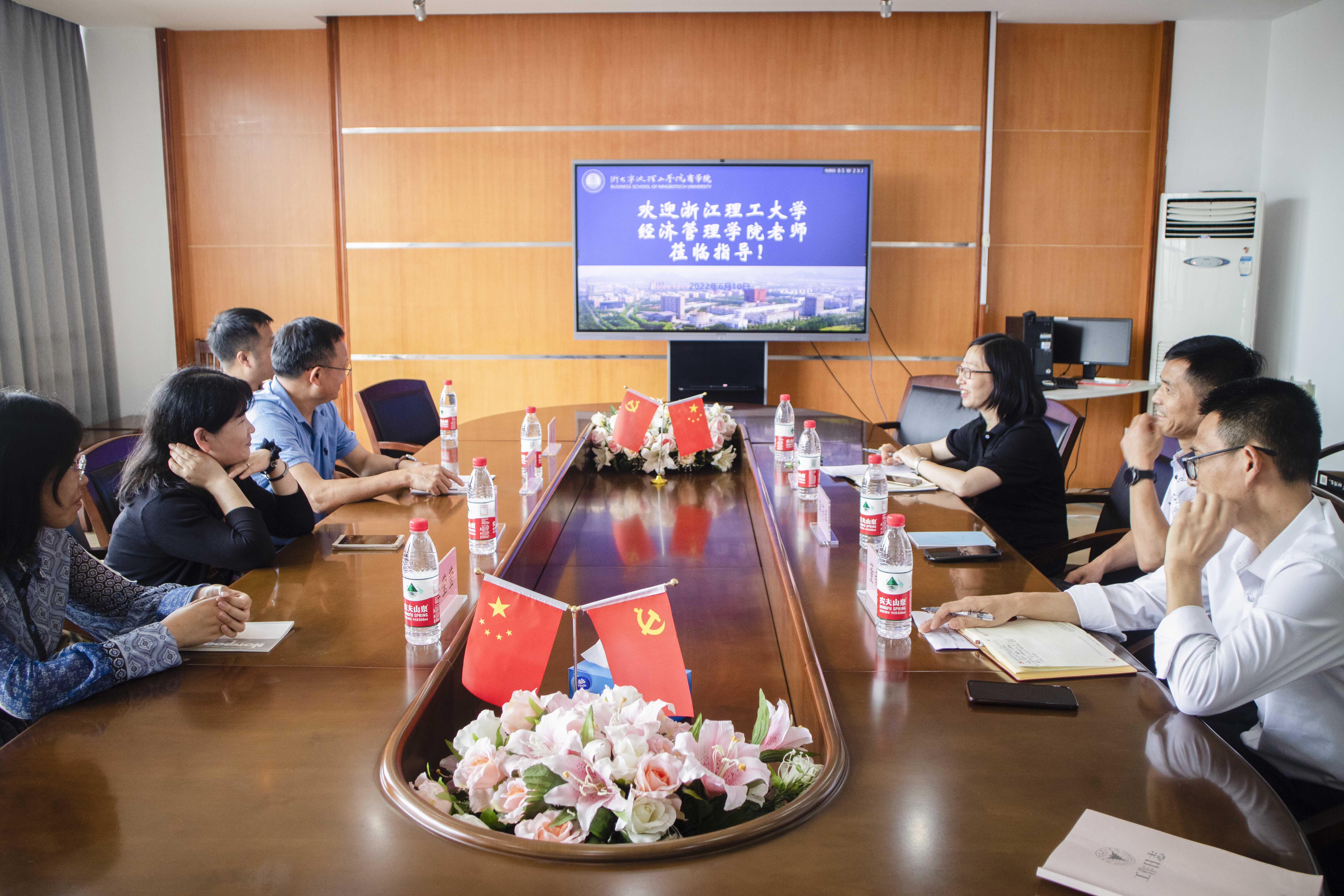 6月10日下午,浙江理工大学经济管理学院经济系系主任陈斐教授、郭爱芳教授、张莹莹老师、唐斌老师赴商学院考察交流,商学院副院长鞠芳辉、金融贸易系系主任樊丽淑、电子商务专业负责人董新平、商学院学生代表参加此次交流,学院党委副书记、纪委书记吴琼主持会议。