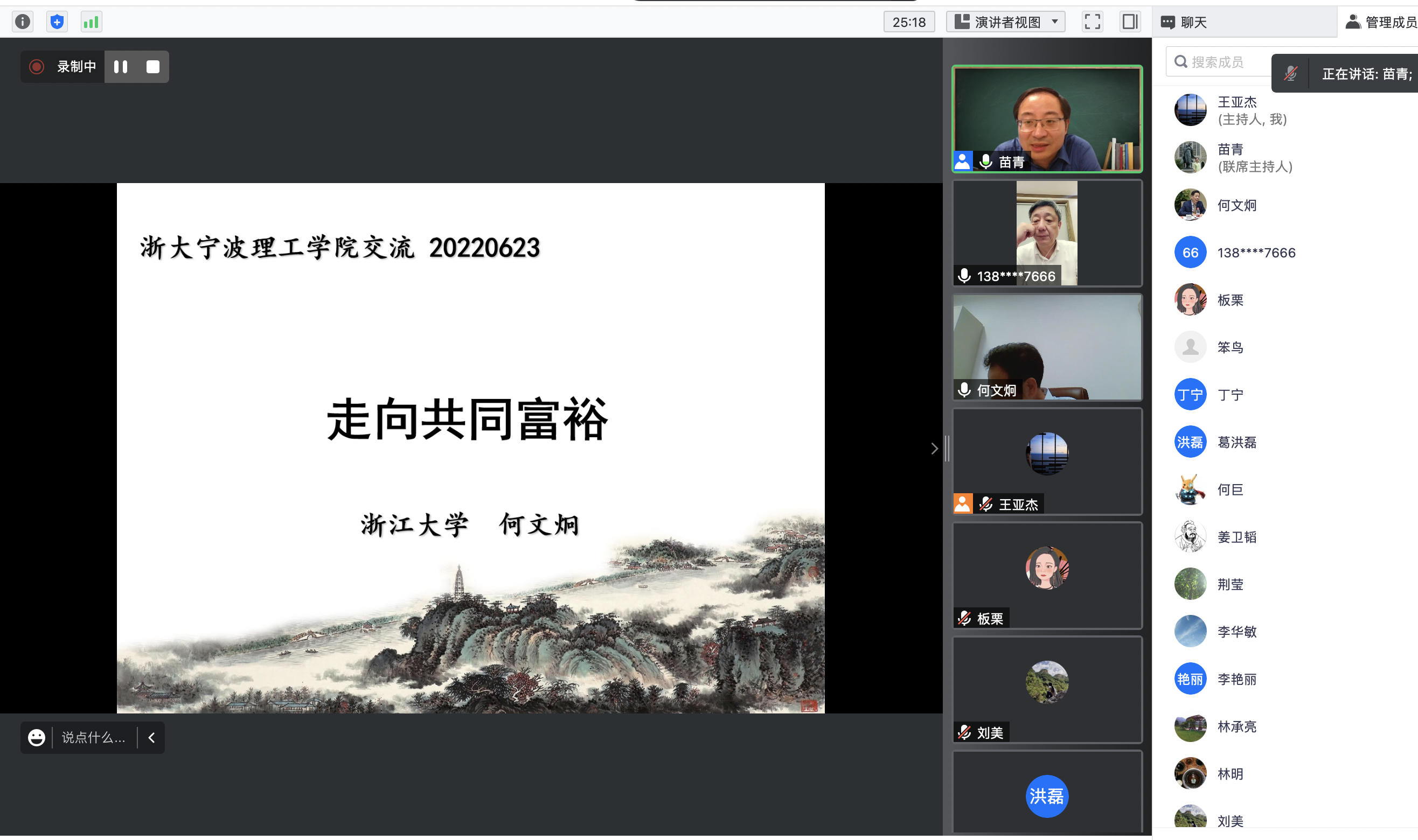 2022年6月23日19点,商学院迎来了智库论坛的第七期活动。本次论坛活动,学院邀请了中国社会保障学会副会长、浙江大学公共管理学院何文炯教授作《走向共同富裕》的报告,学校党委书记胡征宇、商学院院长苗青、商学院师生及其他关心共同富裕的近60位朋友们参加此次论坛活动。由于防控疫情的需要,本次论坛采用线上腾讯会议的方式进行。本次论坛活动由苗青院长主持。