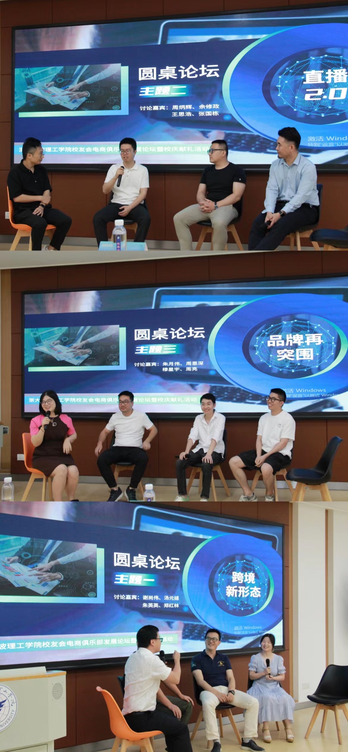 后续的圆桌论坛邀请了谢尚伟、汤元拯、周炳辉、王思浩、朱月伟等校友,分别以《跨境新形态》、《直播2.0》、《品牌再突围》为主题,结合校友们自身工作实践经验,为与会者带来了精彩纷呈的话题讨论。
