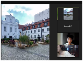 7月4日下午4点开始的第一堂课为波兰华沙大学校园导赏,以及波兰城市风光、历史建筑导赏。导赏开始前,由Golota教授和商学院外事秘书陈妍颖老师致欢迎辞,对同学们积极参与线上访学项目表示肯定,希望同学们能在线上感受到波兰文化的魅力,也期待同学们来年有机会亲自来到波兰,实地与教授们零距离交流互动。第一堂课特别邀请了波兰华沙大学的优秀校友Zuzia老师,步行环绕华沙大学一圈,带着同学们线上观光华沙大学主会议场、展览厅、校园迎宾大道、礼堂、国际研究学院的建筑等。之后Zuzia老师将镜头视角转向波兰首都华沙市城区,为同学们讲述了城区历史建筑背后的故事。
