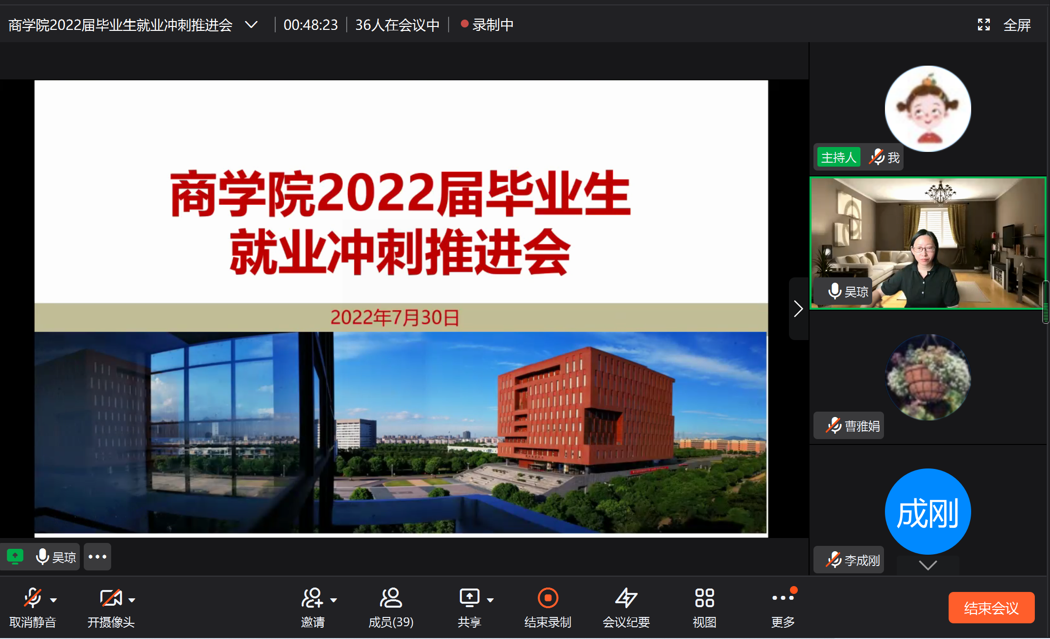 7月30日,商学院召开2022届毕业生就业冲刺推进会。院长苗青,学院党委书记兼执行院长林承亮,副院长马翔、鞠芳辉,院党委副书记兼纪委书记吴琼、专业负责人、班导师和辅导员参加会议。会议由吴琼主持。