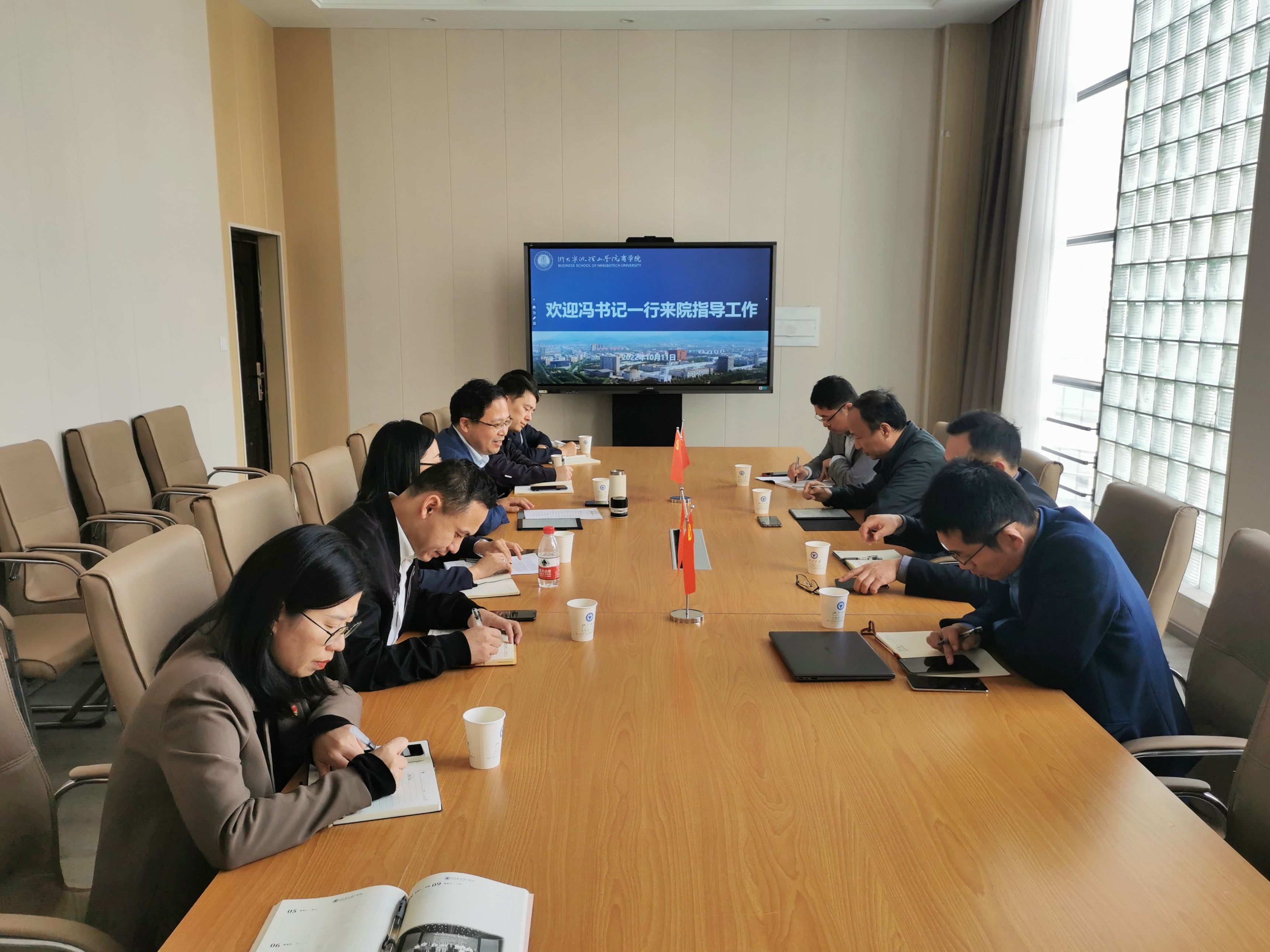 10月11日下午,学校党委副书记冯建波,党委宣传部(党委统战部)部长李炜、学生工作部部长应中元、团委书记周春晓等一行到学院调研指导工作。学院党委书记兼执行院长林承亮,党委副书记、纪委书记吴琼及学院负责宣传、学生工作、统战、团委工等作的副主管以上人员参会会议。