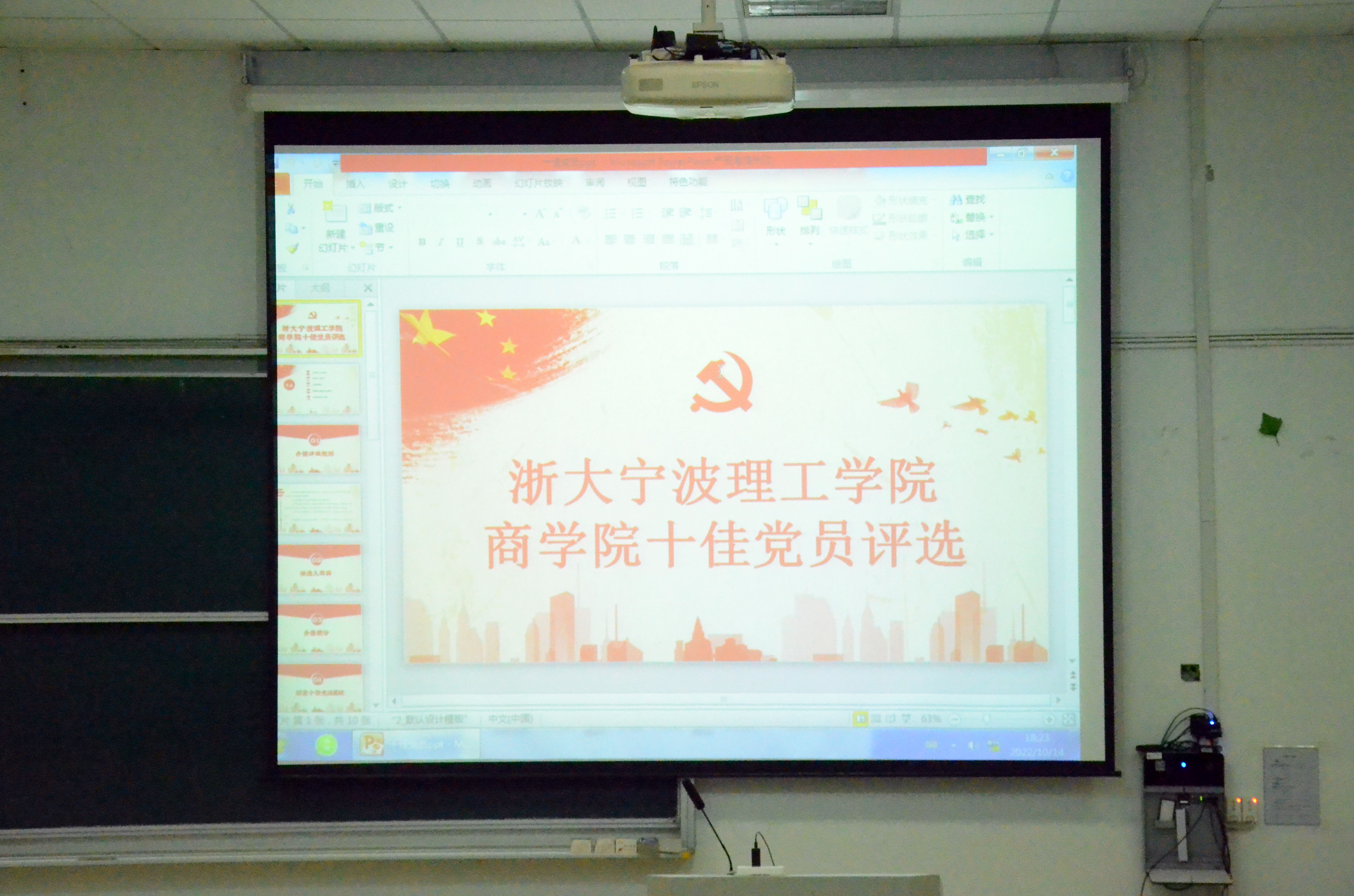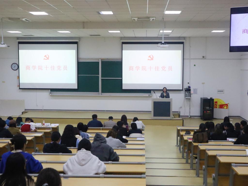 2022年10月14日晚,商学院于SB104教室召开十佳党员评选活动。学院党委副书记、纪委书记吴琼,学工办主管马双龙、副主管潘剑邦、学工办李渊、王丽丽、石文媛、任紫君、王幸媛作为评委参会,各学生支部党员代表、入党积极分子参加学习。