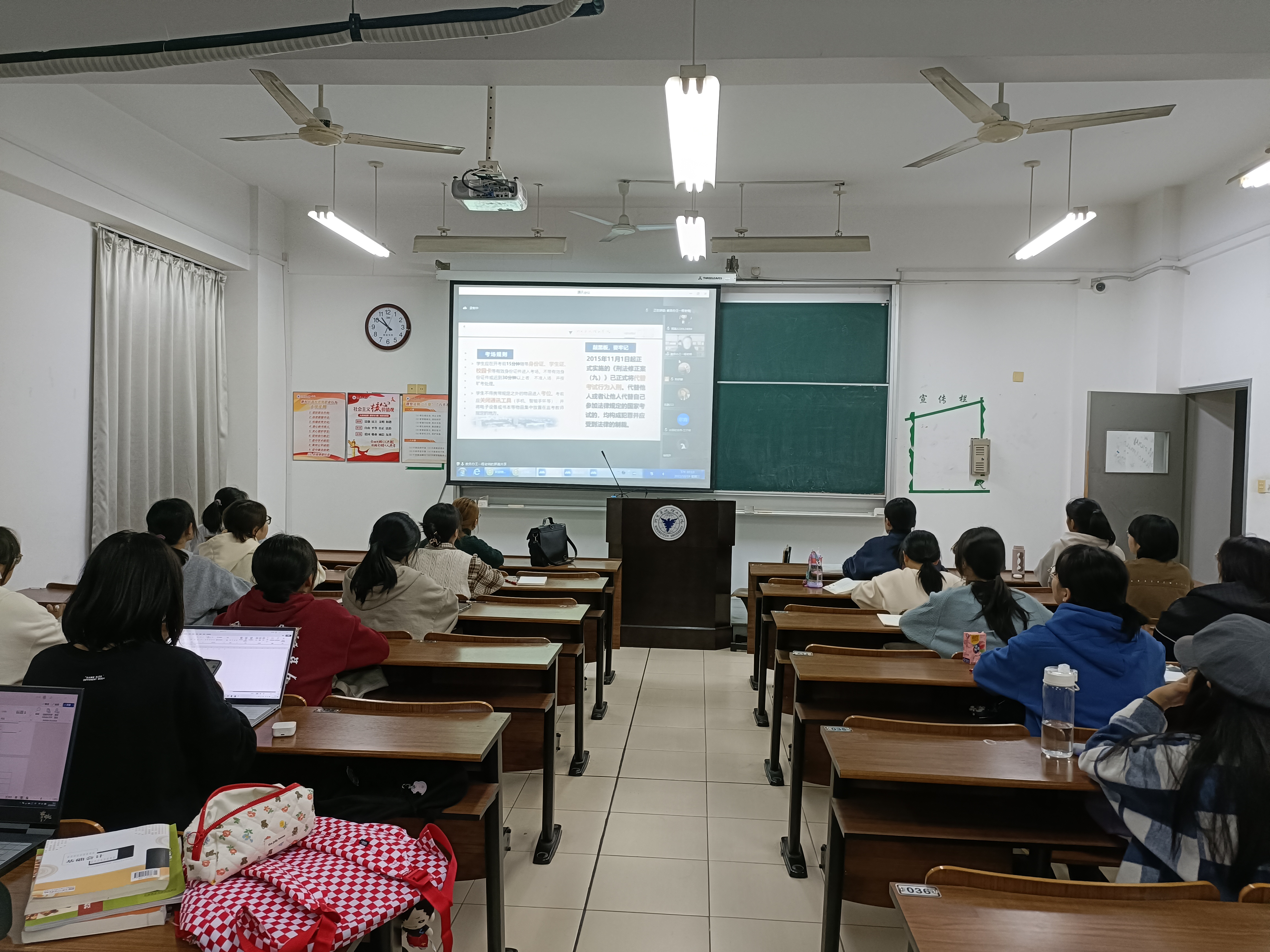 王一程老师从学校新生教学管理规章制度教育入手,他从四方面详细讲解了学校对学生成绩要求,学位授予工作实施细则,考场规则以及违规处罚办法,第二、三、四课堂学分管理办法(试行)。他希望同学们对自己严格要求,珍惜宝贵大学时光,好好学习,树立正确的世界观,走好人生道路。