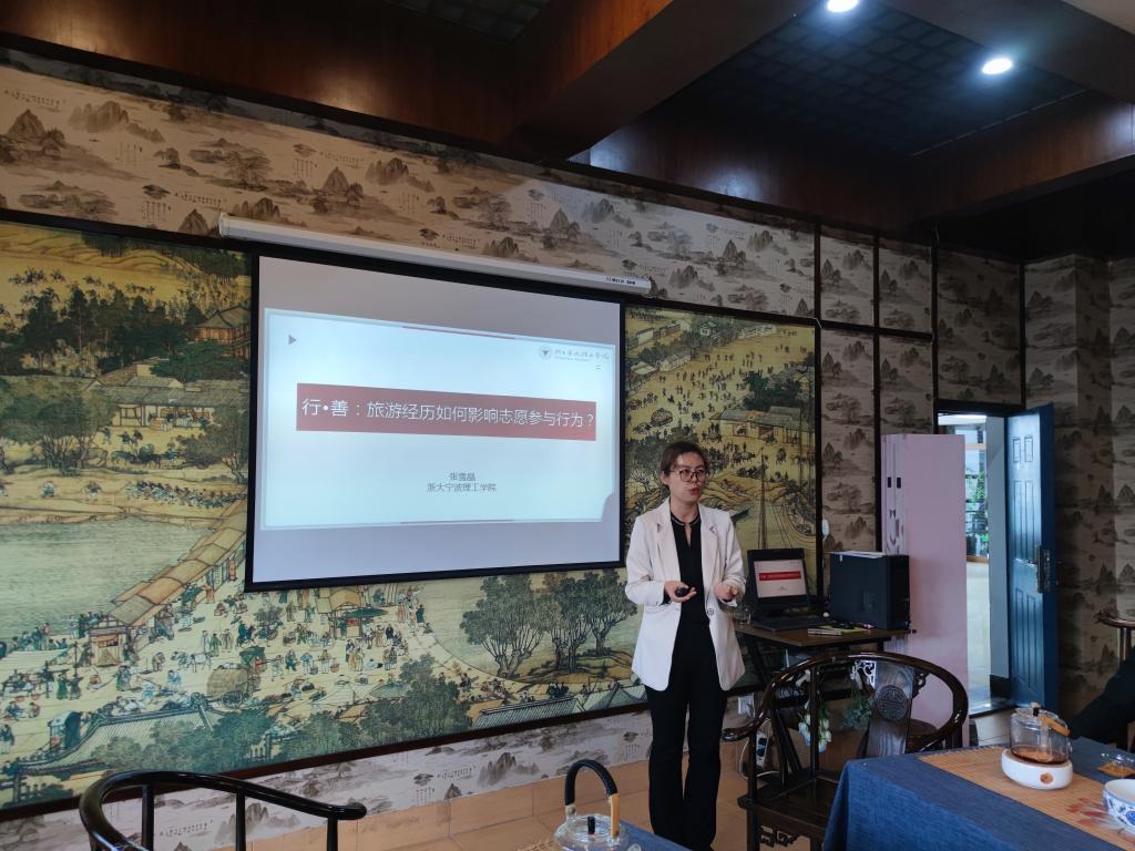 2022年10月19日,商学院“学术工作坊”第十讲学术沙龙活动在商学院“大益爱心茶室”如期举行。本次主讲嘉宾是浙大宁波理工学院商学院讲师张雪晶老师,演讲主题是《行•善:旅游经历如何影响志愿参与行为》,共有20余名商学院教师参加本次沙龙活动。