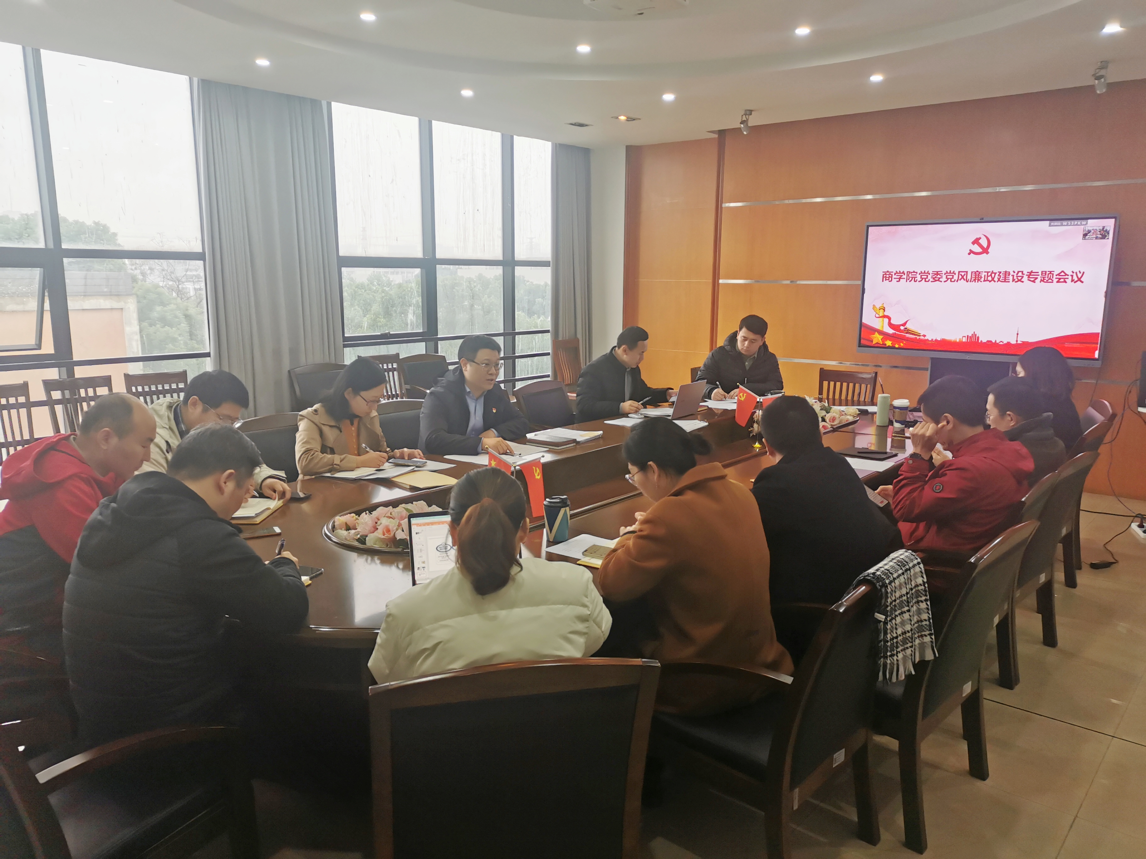 11月30日,商学院召开党风廉政建设专题分析会,学院党政领导班子成员参加会议,全体党支部书记、系主任列席会议。会议由党委书记马翔主持。