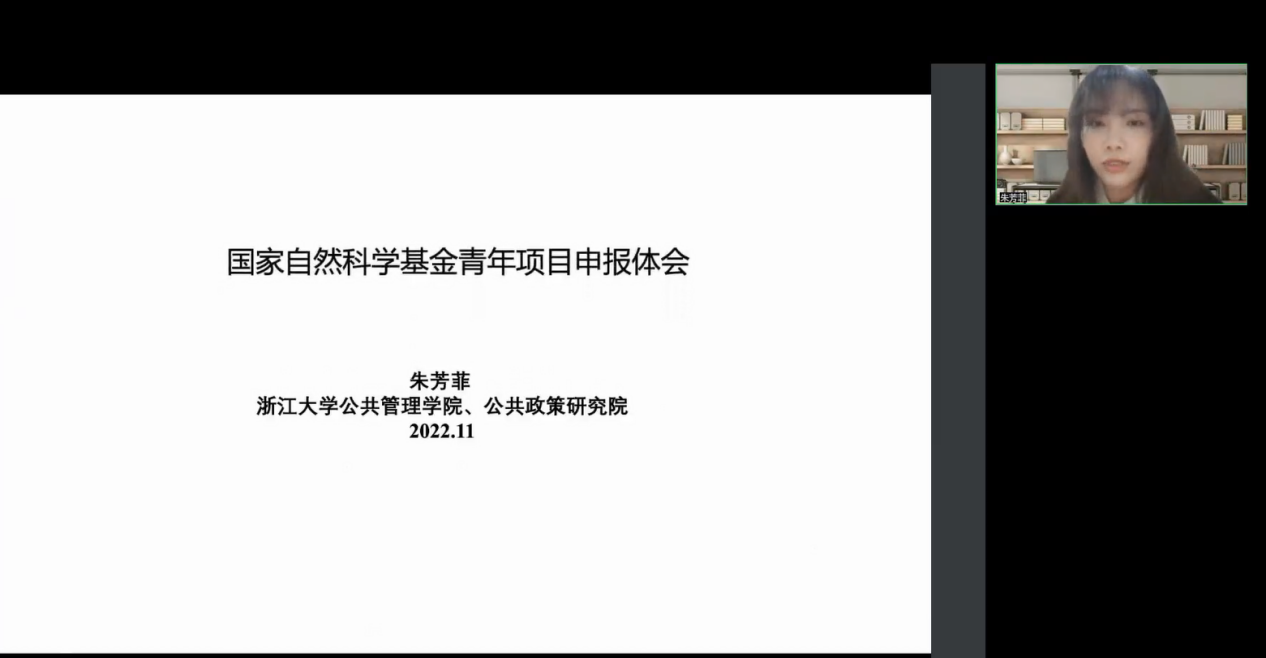 2022年11月30日晚,商学院邀请了浙江大学朱芳菲老师作《国家自然基金青年项目申报体会》的报告,商学院院长苗青教授、商学院副院长鞠芳辉教授、商学院共有35位教师参加了此次辅导会。本次活动由于防控疫情的需要,采用腾讯会议线上方式进行。