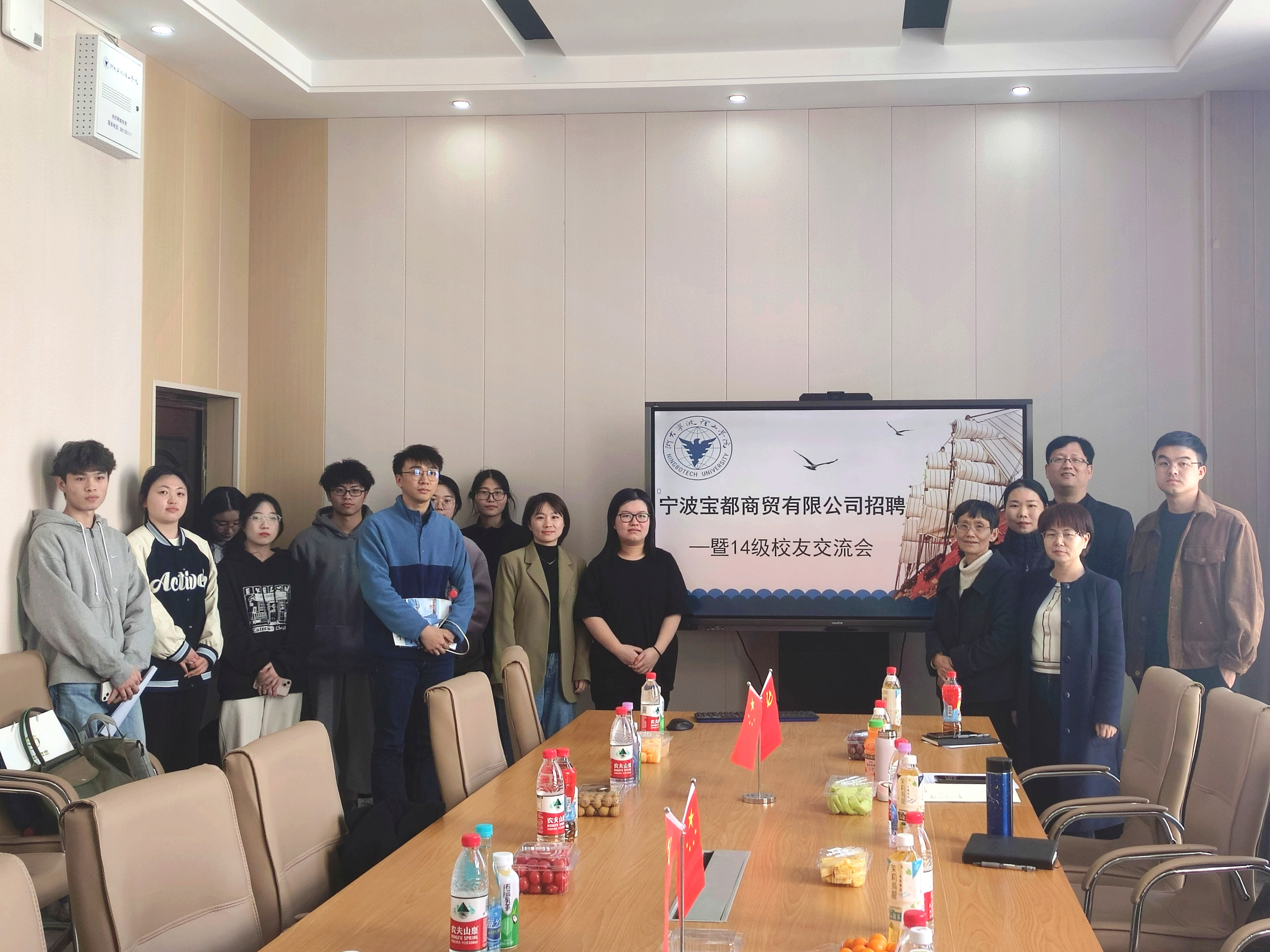 为进一步加强与校友之间的联络,为国贸专业学生就业搭建充满温情的“双向选择”平台,促进毕业生高质量就业。3月14日下午,宁波宝都商贸有限公司招聘交流会暨14级国贸专业校友交流会在SE311教室顺利开展。宁波宝都商贸有限公司人事郭经理一行,国贸专业2014级毕业生张佳燕到校交流,国际经济与贸易专业樊丽淑、李雪艳、谢京华、李艳丽、覃美英、何巨,辅导员潘剑邦出席交流会,国贸专业19级、20级学生参与。