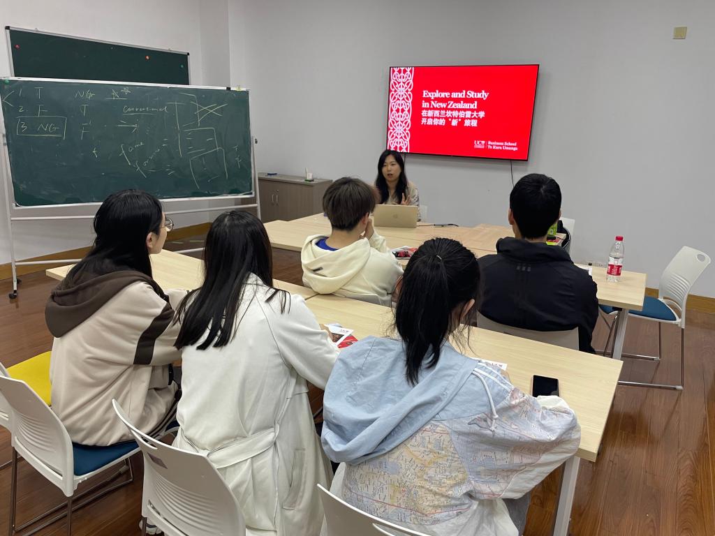 4月10日晚上,商学院举办“一专业一伙伴”合作院校宣介会。该宣介会邀请了新西兰坎特伯雷大学的招生老师,为有意向申请的同学提供一对一线下咨询。参会同学与坎大招生老师零距离交流。翟瑛老师分享了自己在新西兰基督城硕士学习与多年工作生活体验,并耐心解答同学们的问题,包括申请条件、学分兑换、语言考试、申请时间等。我院2022届毕业生成功申请到坎特伯雷大学的升学机会,并以优异的本科表现获得了该校的“院长奖学金”。