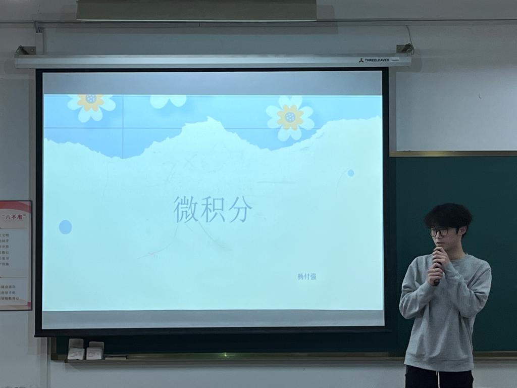 杨付强同学结合了自己从刚开始成绩不理想到期末满绩的学习经历,向同学们传授了快速提高微积分的技巧和经验。