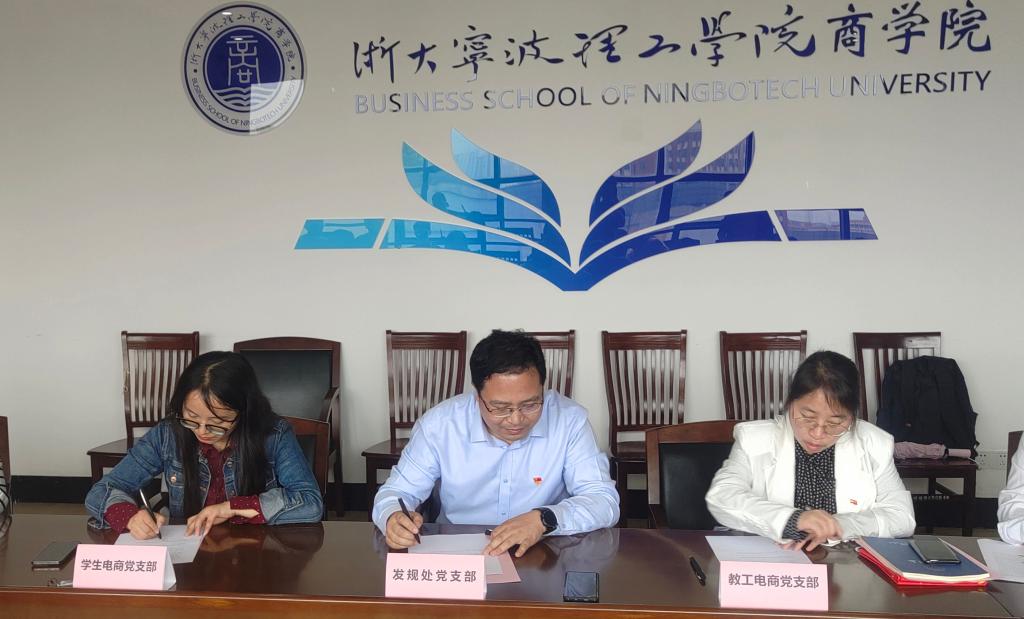 活动开始,学校发展规划处党支部书记林承亮、商学院教工电商专业党支部书记周春华和商学院学生电商专业党支部书记王丽丽签署党支部结对共建协议书。