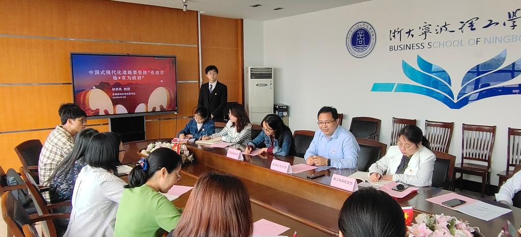 最后,林承亮老师进行了主题党课《中国式现代化道路要坚持‘有效市场+有为政府’》,党课内容紧密围绕“中国式现代化”,对其内涵特征、实现路径等提出独到见解。课后,与会党员们纷纷表示本次党课收获颇丰,进一步加深了对“中国式现代化”的认识。