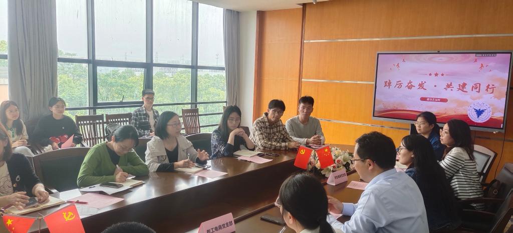 2023年4月19日中午,学校发展规划处党支部与商学院教工、学生电商党支部在SC415开展“踔厉奋发·共建同行”主题党日活动。共建活动由学生电商专业党支部学生党员王杰主持。