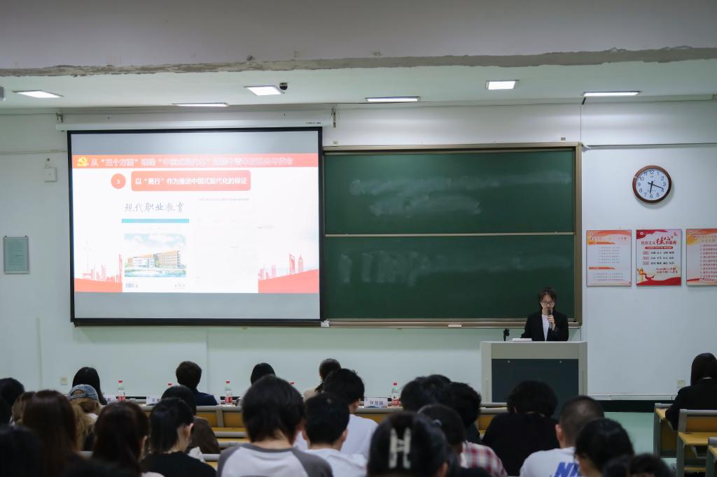 首先进行的是微党课展示,八个学生支部的党员代表分别围绕“中国式现代化”“乡村振兴”“共同富裕”“八八战略”“新时代”等主题,按照学习要求,运用身边人身边事,从不同方面展示了理论学习的成果和各支部的实践情况,让参会同学们收获颇丰。