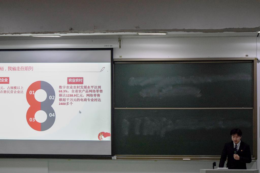 4月19日晚,商学院于SC216举行微党课宣讲暨“习近平新时代中国特色社会主义思想”主题知识竞赛。商学院党委副书记、纪委书记吴琼,学生党支部书记潘剑邦、石文媛、任紫君出席,学院各学生支部代表、入党积极分子参加。