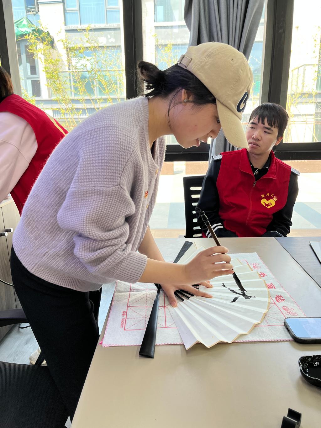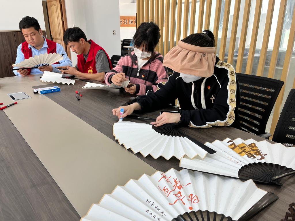 在手书扇面活动上,大家热情高涨,在扇面上写下对自己未来的期望。