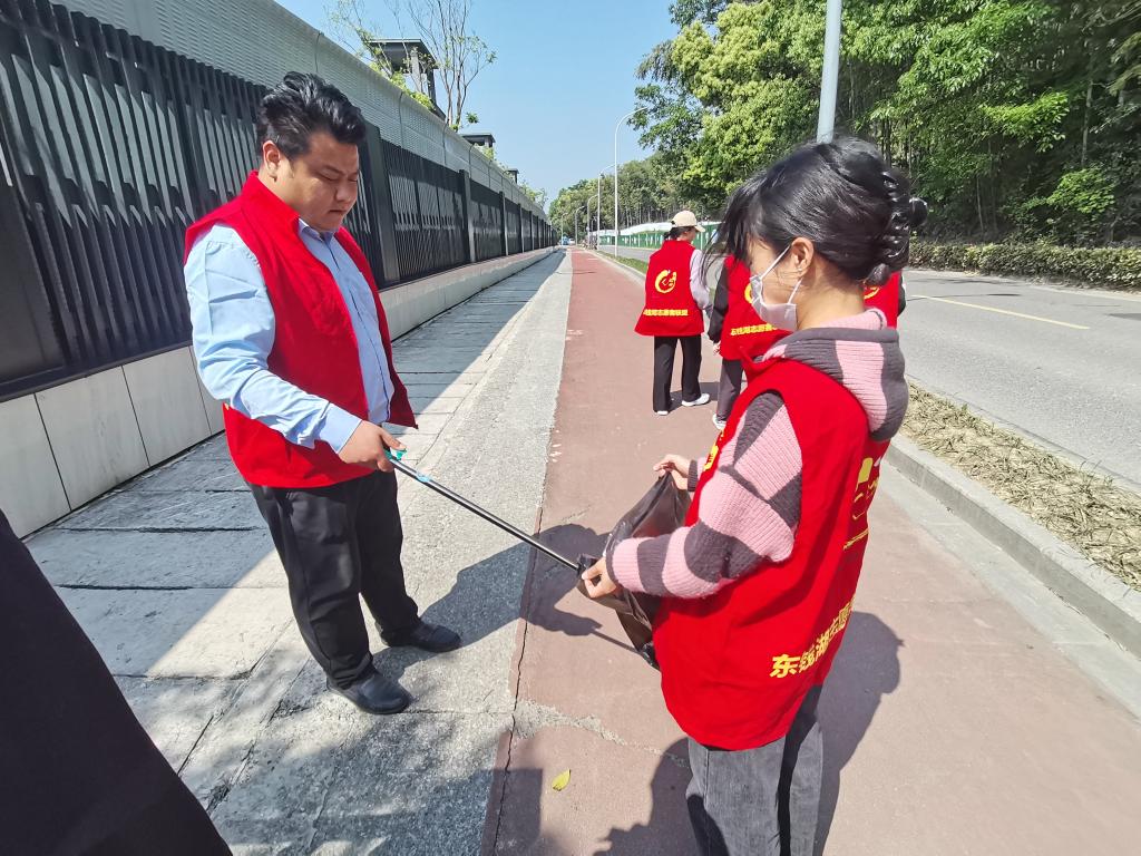 之后,学生党员们在白石社区开展社区垃圾清理的志愿服务活动。通过志愿者活动,同学们也能更好地深入村社,为社区卫生整治贡献自己的力量。