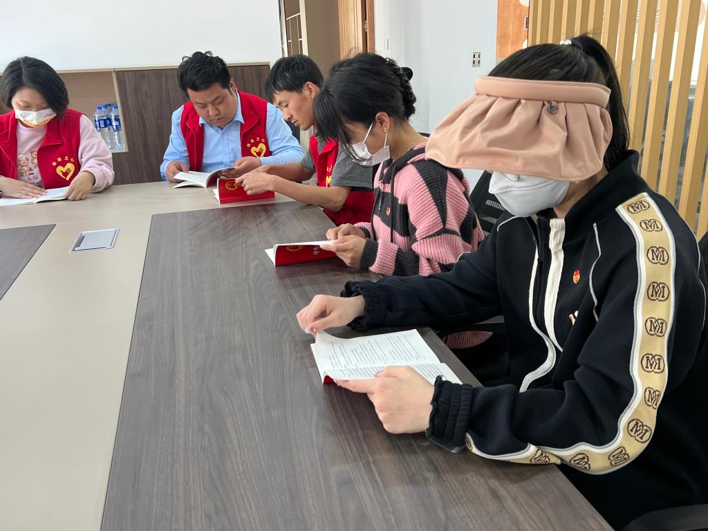 支部共建活动分为理论学习、“未来期许”扇面手书体验和社区志愿服务三部分。活动开始,东钱湖白石社区支部书记向学生党员们介绍了该支部的基本情况,并对今后开展支部共建工作方案作了简单的介绍。随后,白石社区工作人员带领大家开展《中华人民共和国宪法》等理论学习,呼吁同学们在主题教育中认真学习,做自律、自信并且有正确理想信念的新时代青年。