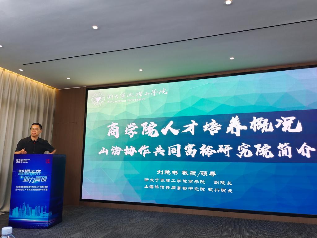 会上进行了学生实践实训教育基地授牌。马翔书记与浙江云创浙理科技有限公司总经理张华共同为浙大宁波理工学院商学院学生实践实训教育基地揭牌。随后,刘艳彬副院长向与会政府和企业嘉宾介绍了商学院人才培养和“山海协作共同富裕研究院”的情况。鄞州区委组织部人才办介绍了鄞州区人才政策,园区入驻企业分享了在园区开办企业的经验与体会。