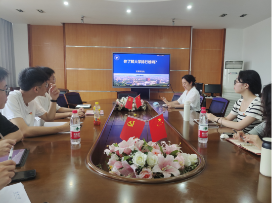 2023年6月19日下午,学校发展规划处党支部李荷迪老师受邀给商学院学生电商专业党支部作“你了解大学排行榜吗?”的主题党课。主题党课由党支部书记王丽丽主持,正式党员、预备党员参会。