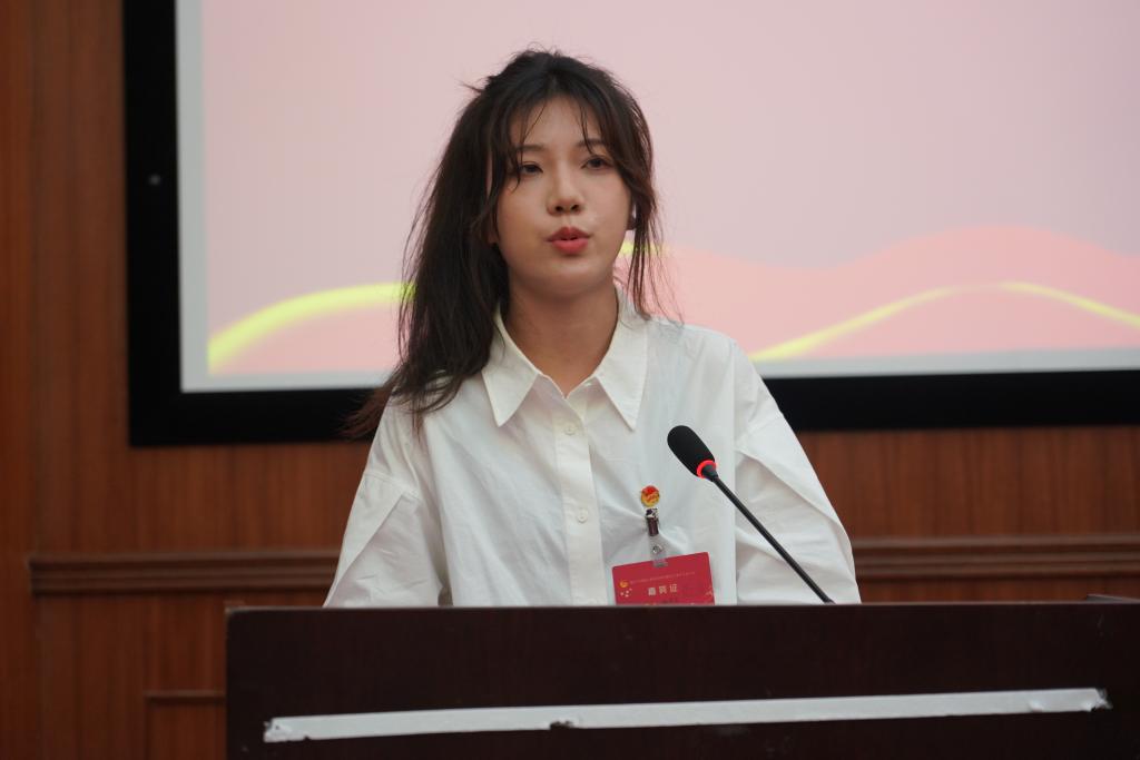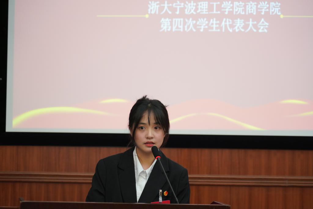 开幕式后,俞逸菲同学代表商学院第三届学生会主席团作主题为《不忘初心争先锋,矢志奋斗续新篇——为建设与国际接轨的区域一流商学院贡献青春力量》的工作报告。会上审议通过了学生会选举办法、监计票人等,并选举产生了新一届学生会主席团2名成员。